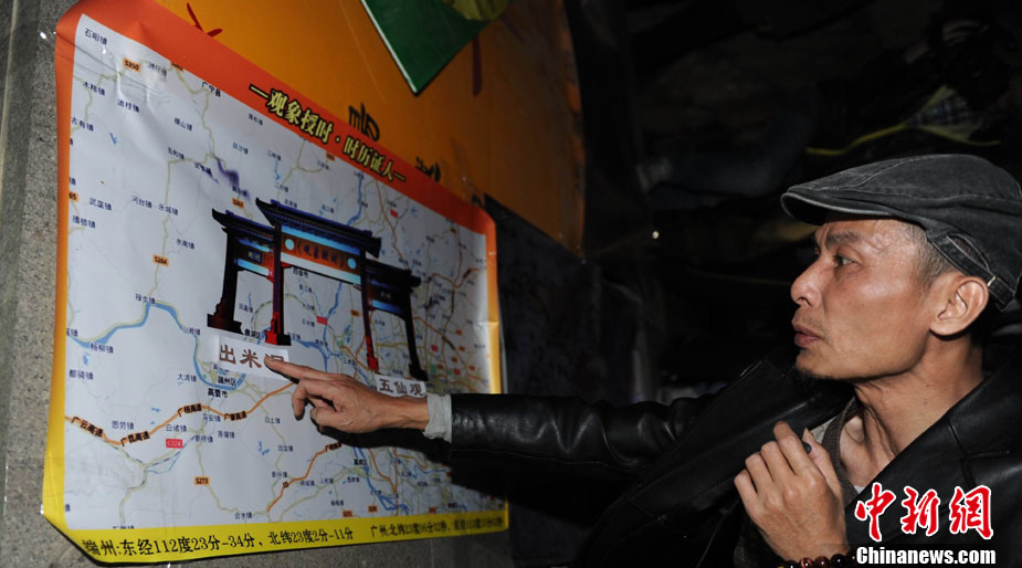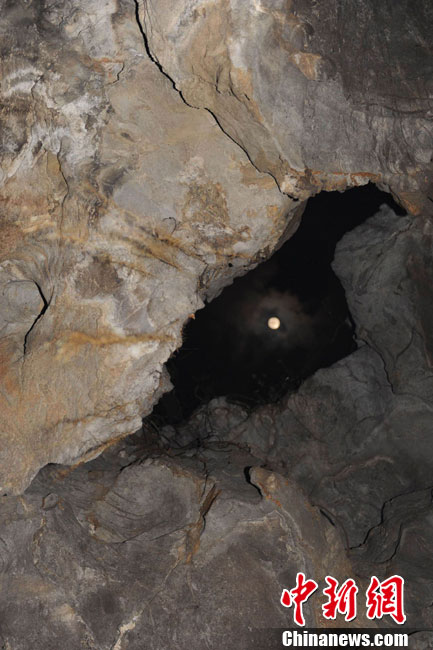12月22日凌晨,广东肇庆七星岩“出米洞”景区冬至日出现“头上有明月,脚下无暗影”月光垂照山洞的奇趣天文地理景象,吸引了北京、广州、肇庆三地天文地理气象科研人员。中国科学院国家天文台研究员张济同称,月亮垂照出米洞奇观必须符合满月时分,冬至日,月亮必须到达北纬23°08′上空三个条件。他说,下一次出米洞看月光垂照要等19年,本世纪100年仅可能看到6次这样的奇观。图为冬至日凌晨的端州出米洞上空的月亮。