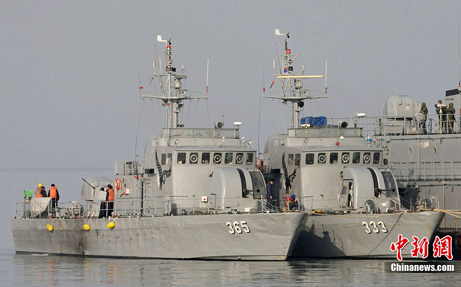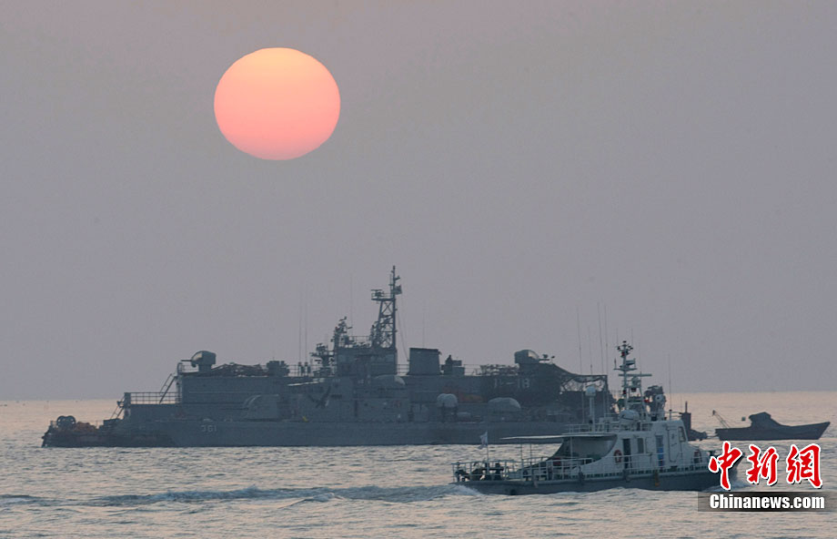 韩国国防部22日宣布,韩国陆军和空军23日将展开历来最大规模的陆空联合实弹射击演训。此外,韩国海军22日起也在日本海展开4天的演习。图为12月22日,两艘韩国船只在延坪岛附近海域行驶。