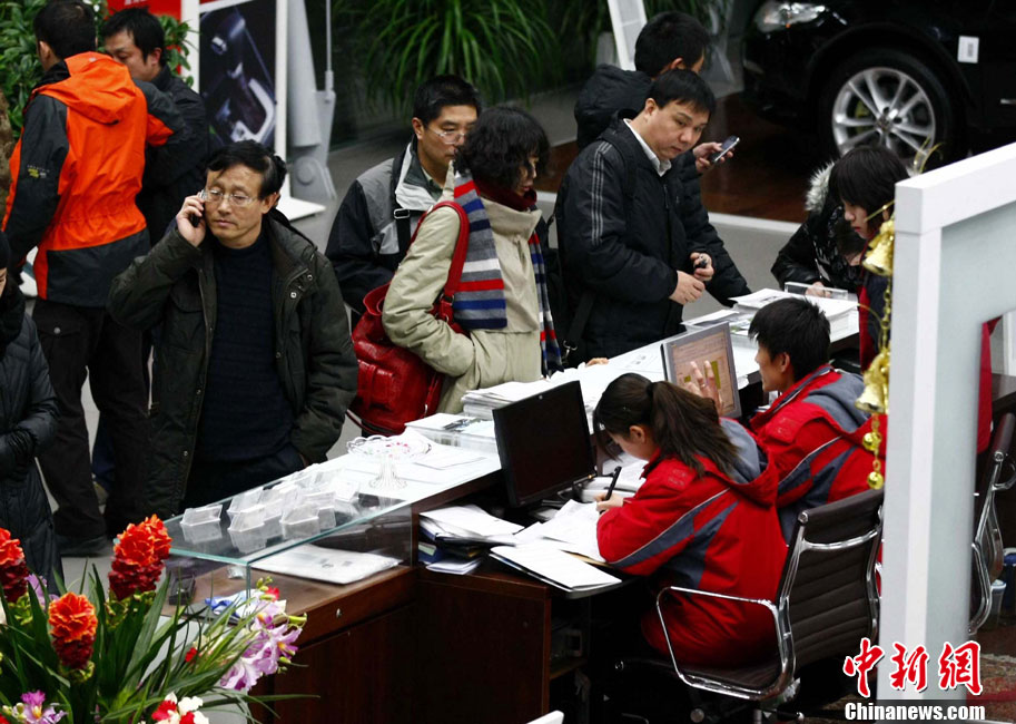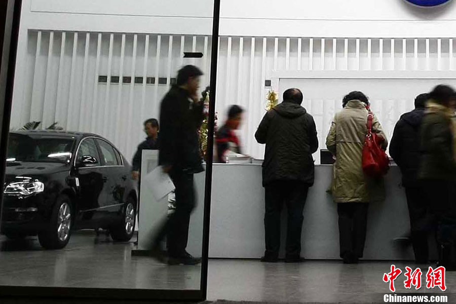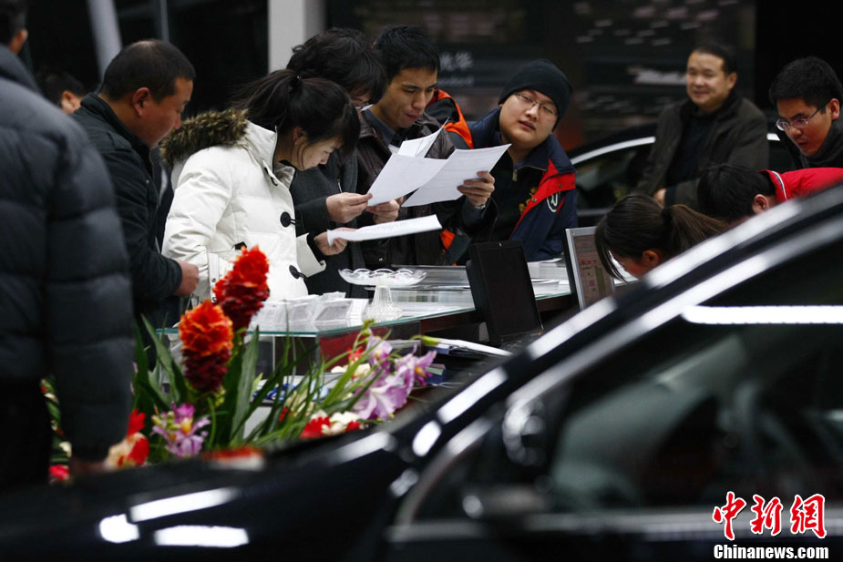 12月23日夜,北京民众连夜排队购置新车。当日下午,北京市人民政府新闻办公室召开“北京交通改善措施”新闻发布会,正式公布了《关于进一步推进首都交通科学发展 加大力度缓解交通拥堵工作的意见》,将实行综合措施治理交通拥堵。其中,2011年度北京小客车总量额度指标控制为24万个,牌照通过摇号无偿分配的政策成为民众关注的焦点。中新社记者 富田 摄