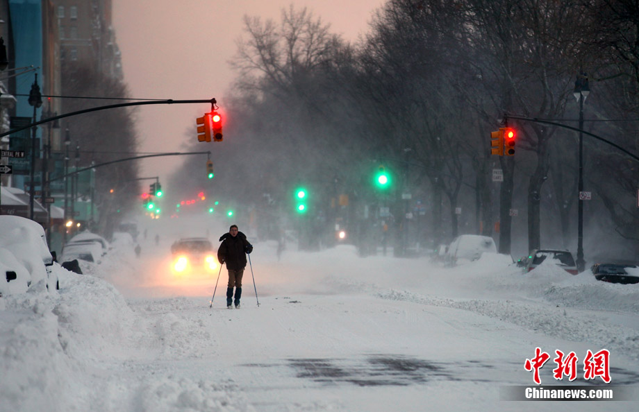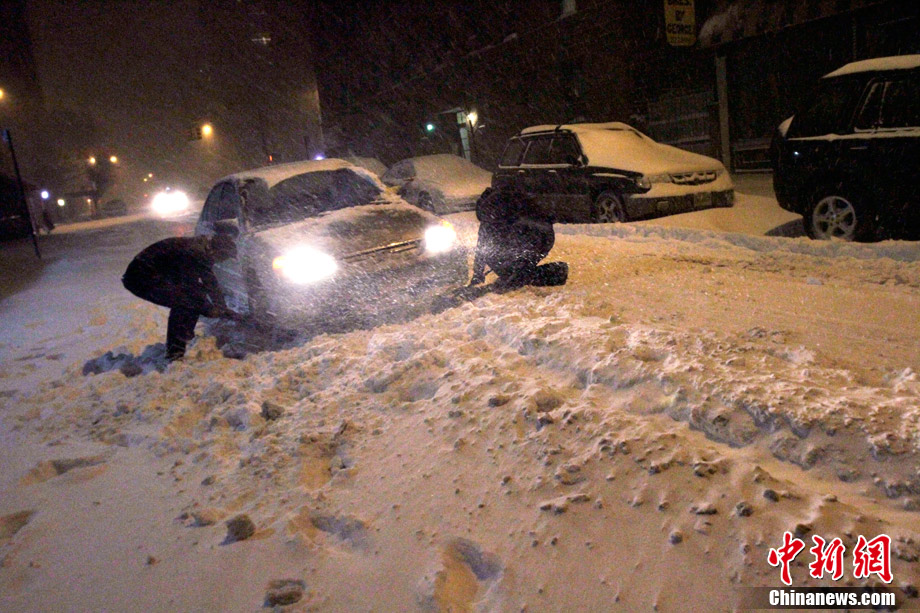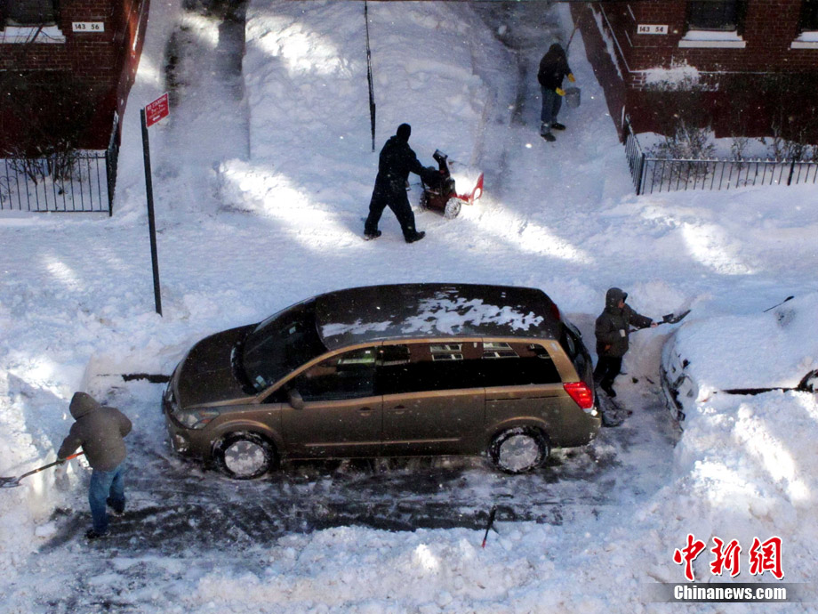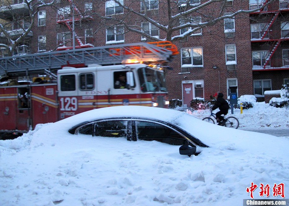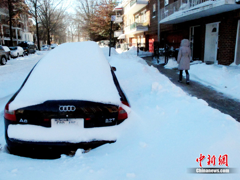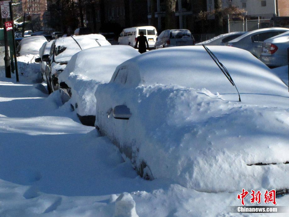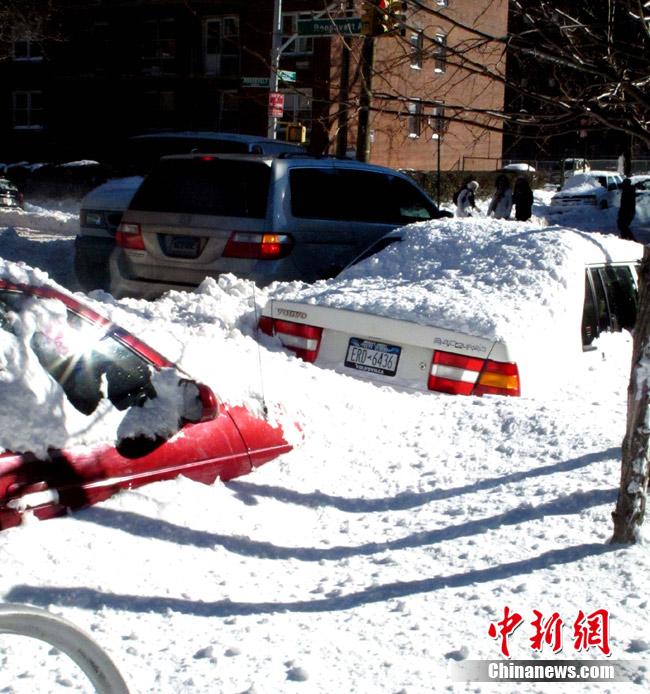 当地时间12月27日,纽约整座城市被大雪深埋,政府雪后清理行动迟缓,导致公共交通设施几乎全线受阻,引起民众不满。纽约市长布隆伯格在当日举行的发布会上承认,年终将至,纽约市政府经费捉襟见肘,因此“没有额外的钱支付工人加班费”。这导致周末纽约暴雪过后街道清扫速度缓慢,交通大瘫痪延至星期一。图为一辆停在路边的汽车在大雪过后整整一天,仍然被深埋雪中。中新社发 魏晞 摄