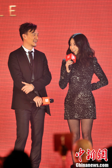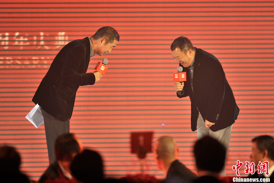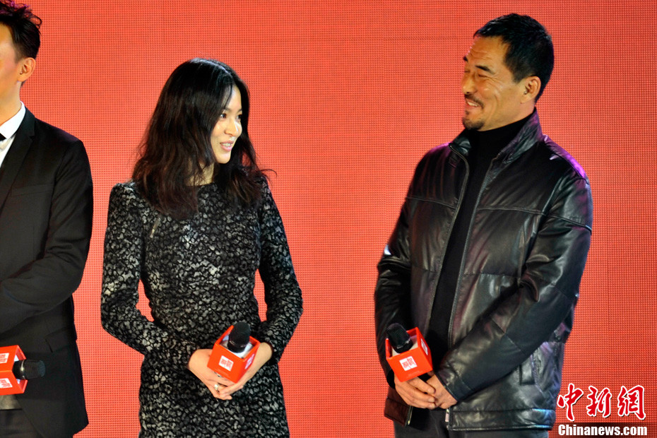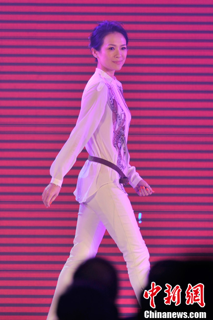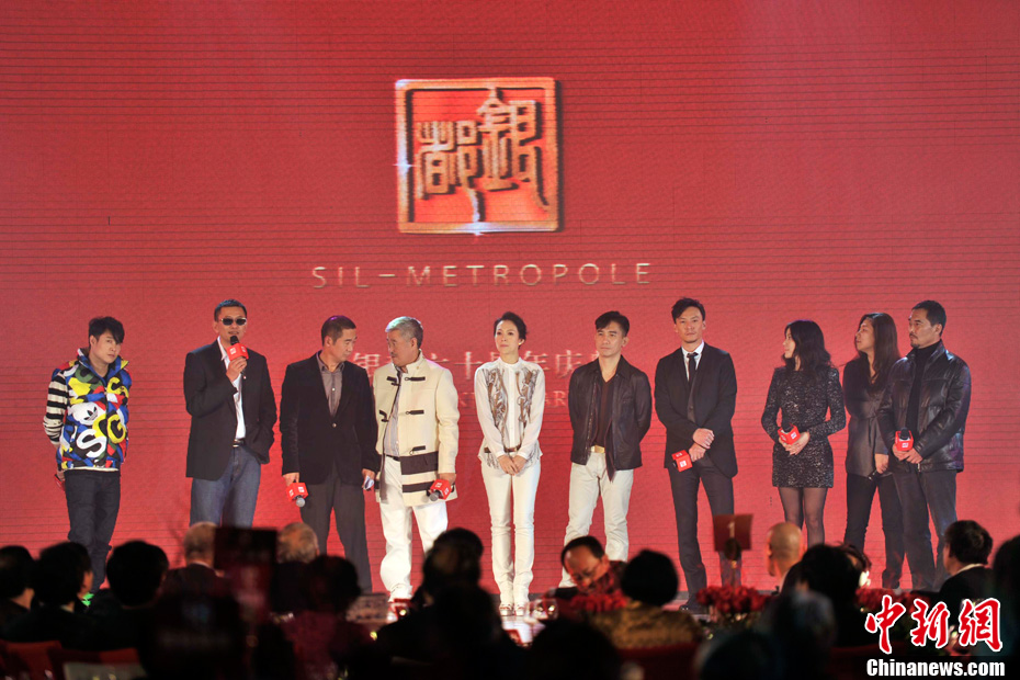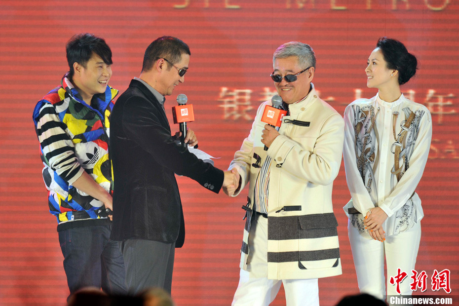 12月28日,银都机构六十周年庆典盛宴在北京举行。华语功夫巨制《一代宗师》剧组首度全阵容亮相,香港导演王家卫携梁朝伟、章子怡、赵本山、张震、宋慧乔、小沈阳、王庆祥等明星压轴出场。图为章子怡登台亮相。中新网记者 金硕 摄
