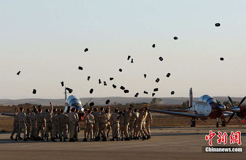 当地时间12月28日,在以色列南部城市贝尔谢巴附近的哈特泽里姆空军基地,以色列空军飞行学院的毕业生进行飞行表演。当日,数十名以色列空军飞行学院的学员在这里举行毕业典礼,并进行飞行表演。