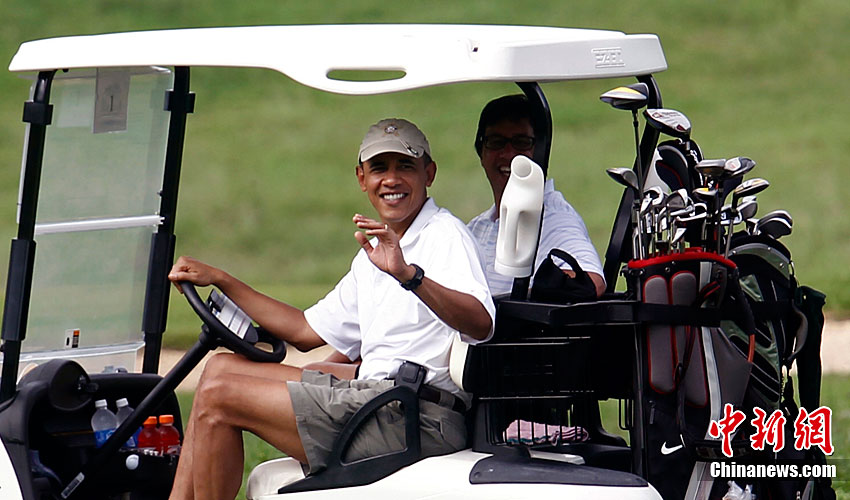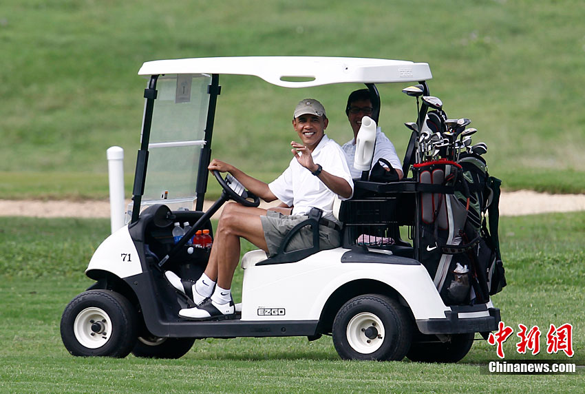 奥巴马高尔夫球场享假期 当司机大秀车技