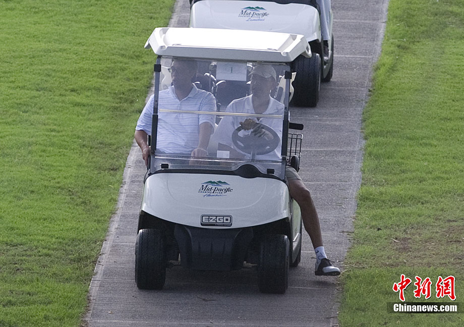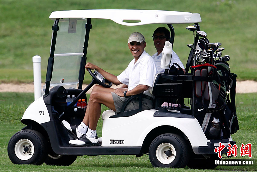 当地时间12月28日,美国总统奥巴马在夏威夷度假。他在高尔夫球场上不但打球,还充当起了司机大秀了一把车技。