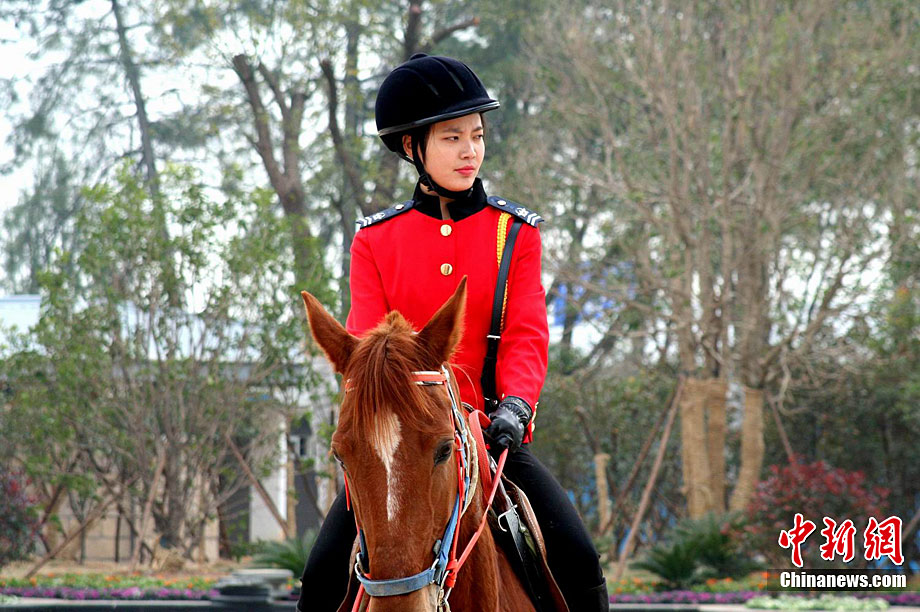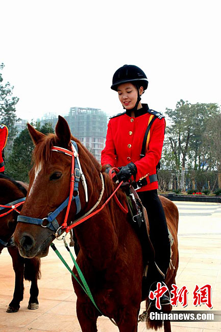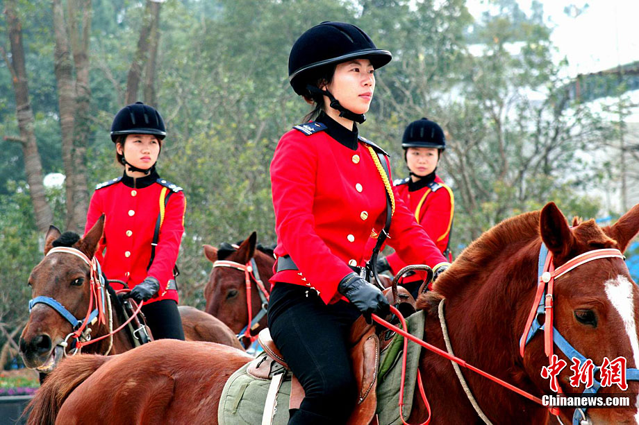 南昌新动物园将于2011年元旦正式开园。12月29日,由该动物园筹建的江西首支女子骑士队惊艳亮相,她们身着统一的欧式红外套,显得英姿飒爽。据介绍,这支女子骑士队将在新动物园开园后,负责在园区内巡逻、验票并为游客提供问题咨询的服务。刘占昆 摄