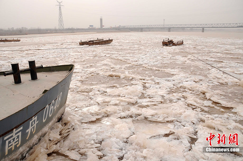 受新一轮强冷空气影响,黄河下游河段封河迅速发展。截至12月28日,山东省济南市黄河槐荫河段以下全线流凌,最大流凌密度80%。针对黄河下游不稳定封冻的特点,黄河防总要求河南、山东黄河河务部门加强凌情观测,全力做好各项防凌工作。张滨 摄 图片来源:CNSPHOTO