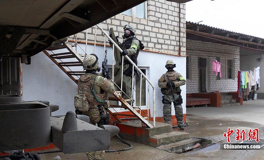 12月29日,俄罗斯达吉斯坦共和国首都马哈奇卡拉,俄罗斯联邦安全局反恐人员参加特别行动,打死一名武装分子。