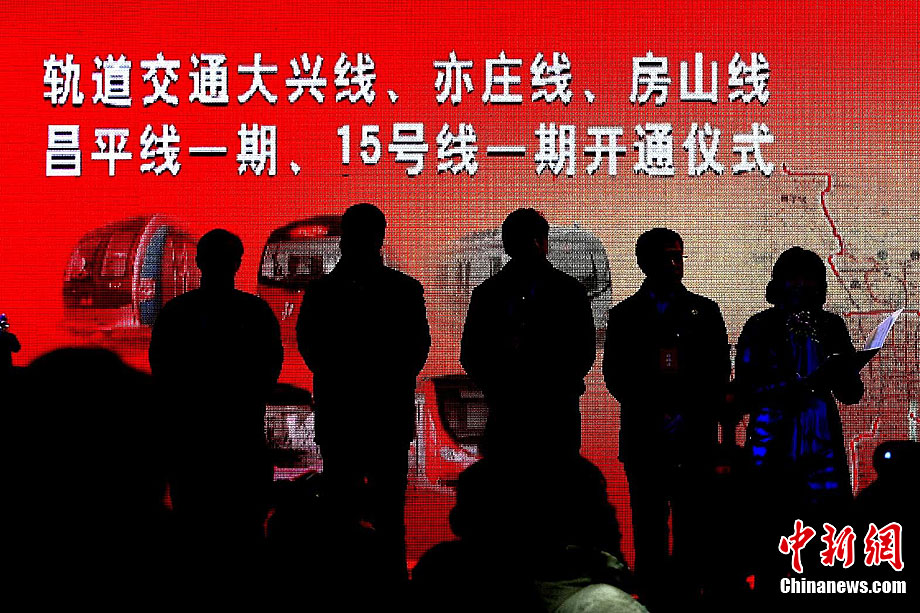 12月30日,北京5条地铁新线开门迎接乘客。这5条地铁线路包括房山线、昌平线一期、15号线一期、亦庄线和大兴线,总长度达108公里。上述地铁线路全部开通后,北京市轨道交通运营里程将首次突破300公里。中新社记者 富田 摄