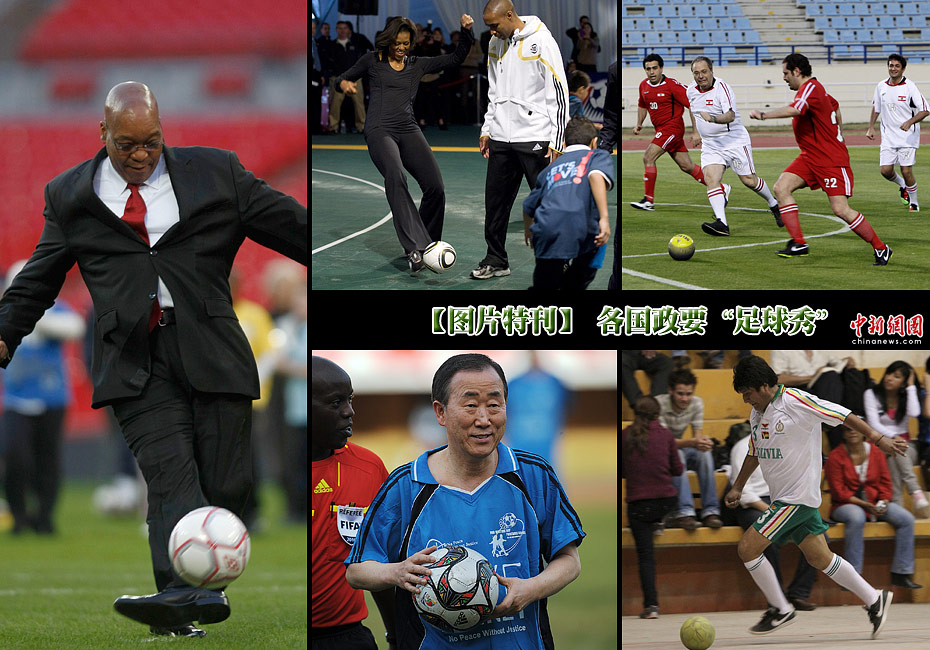 作为一项全球运动,足球不单是运动员的最爱,同时也受到多国政要的热爱。传统列强英法德西的政府首脑曾先后在不同场合大秀自己的球技,而作为2010年世界杯东道主南非的总统祖玛也不例外。