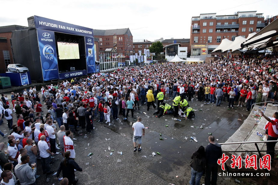 6月13日,英格兰在世界杯小组赛中被美国1-1逼平。赛后,聚集在曼彻斯特足球公园集体观看比赛的部分球迷为宣泄情绪闹事,警方拘捕了部分足球流氓。