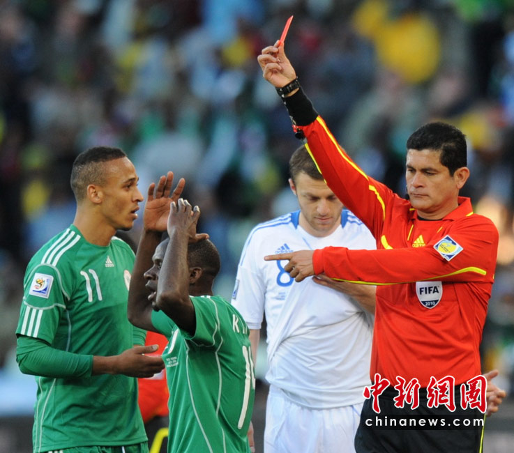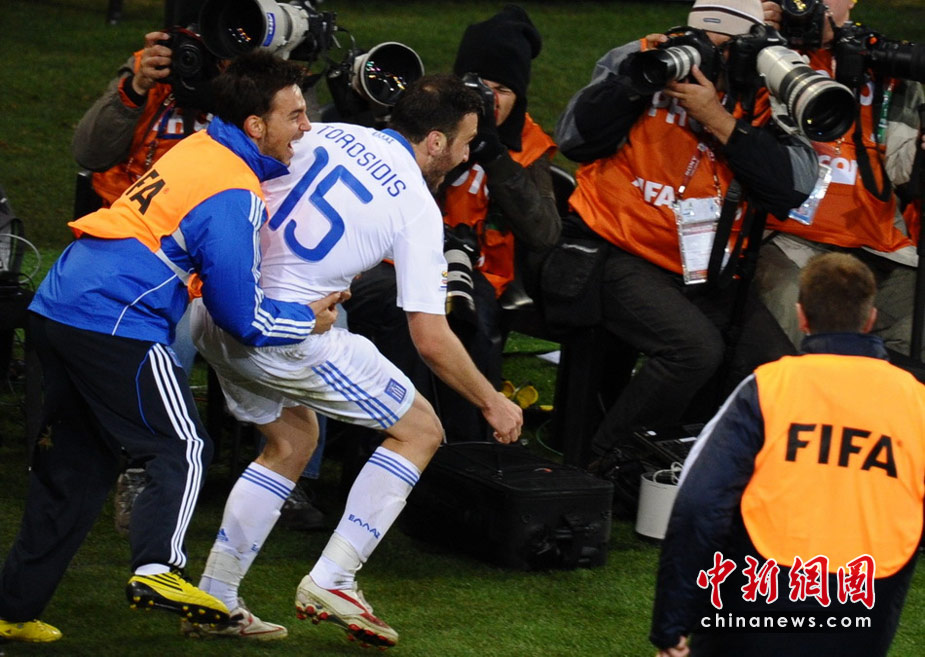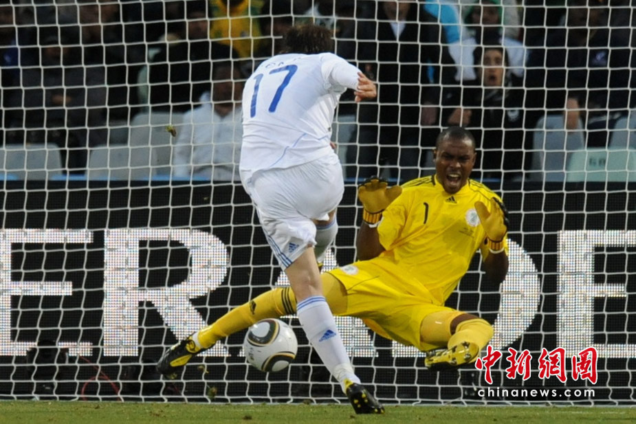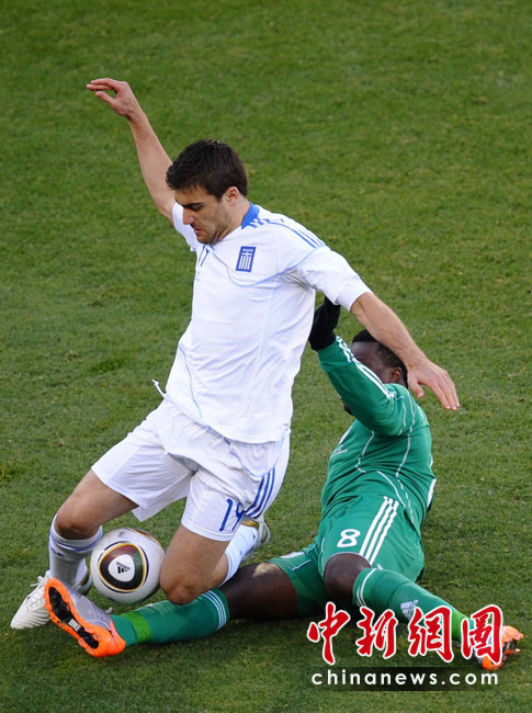 6月17日,南非世界杯B组第二轮比赛打响,由欧洲劲旅希腊在布隆方丹的自由洲球场迎战非洲雄鹰尼日利亚。上班时尼日利亚任意球率先破门,但此后被红牌罚下一人,希腊队随即抓住机会,在上下半场各入一球,以2-1逆转击败尼日利亚队。