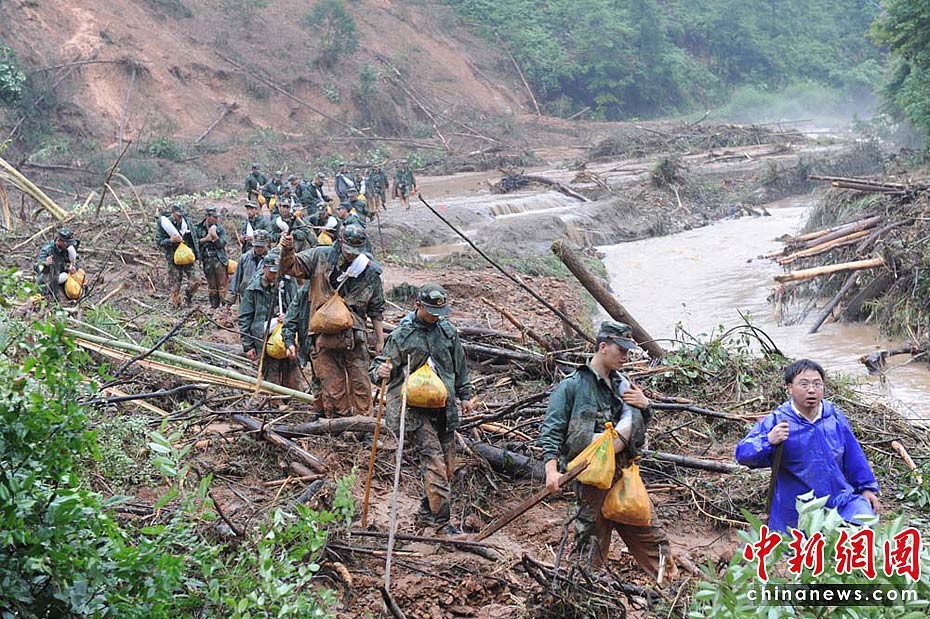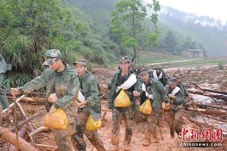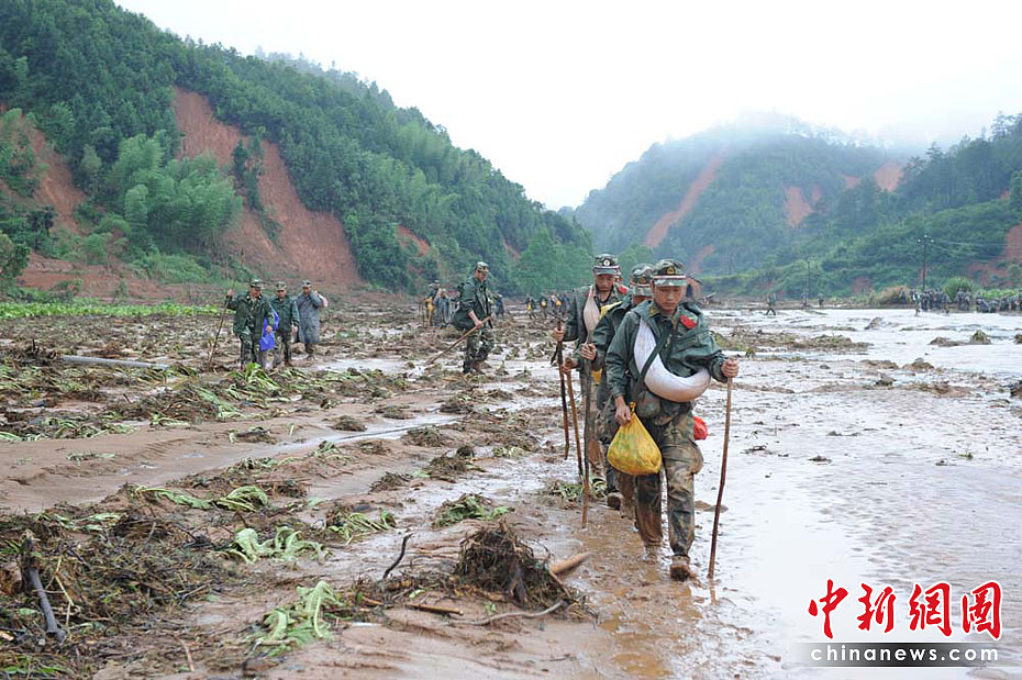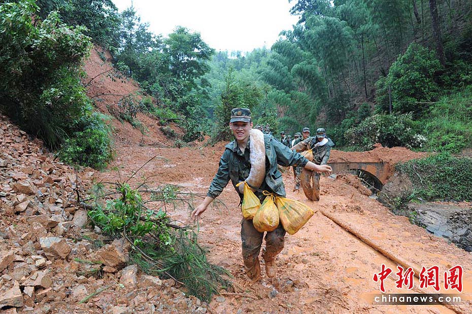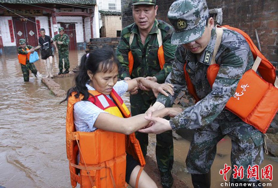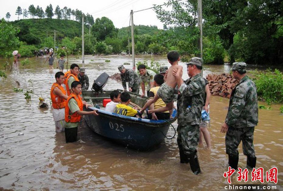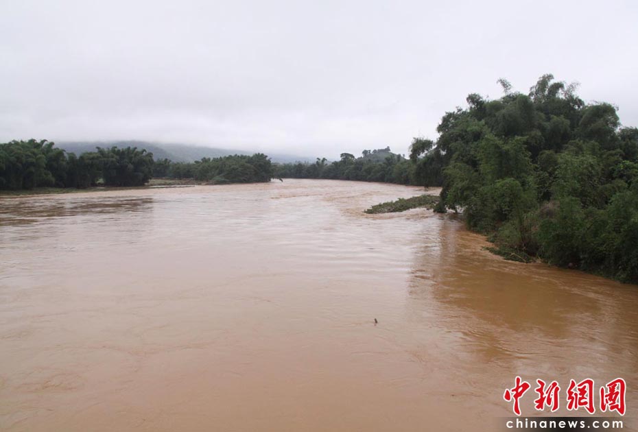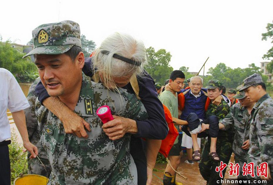 6月19日,福州一市民在市区被淹的道路艰难骑行。连日暴雨侵袭,福建各地水灾不断,已导致165万人受灾。中新社发 王东明 摄