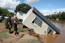 浙江进入汛期,连日来暴雨如注,浙江衢州市多次出现山洪,险情不断。6月18日傍晚,龙游小南海镇定埠村4名村民过桥时因突发洪水,两人被围困河中,两人被河水冲走。中新社发 江耘 摄
