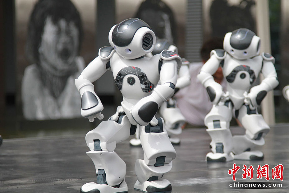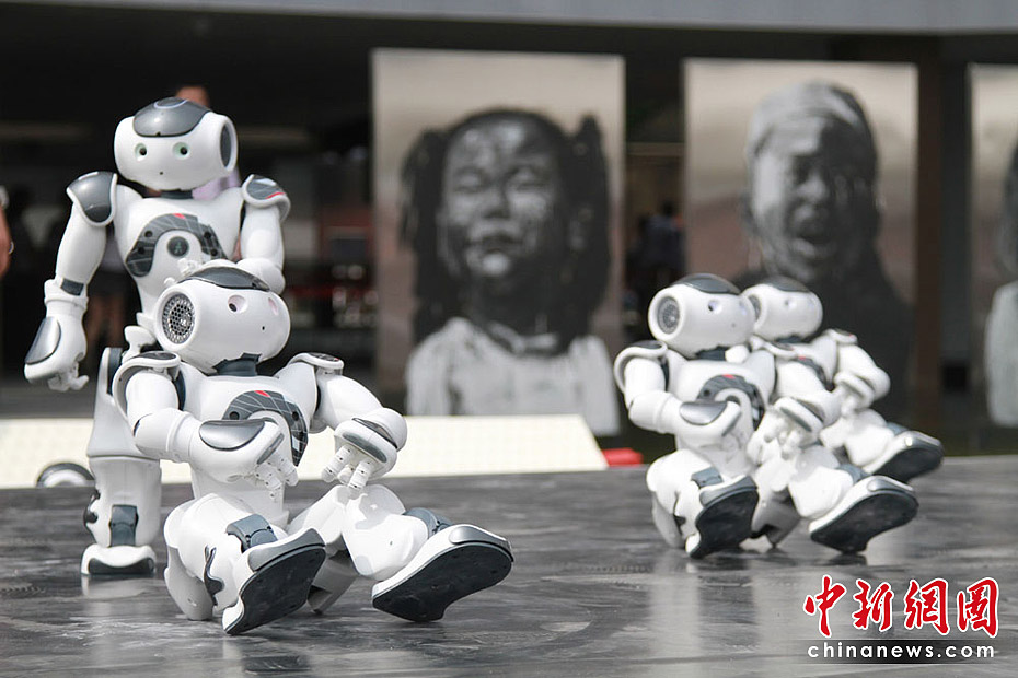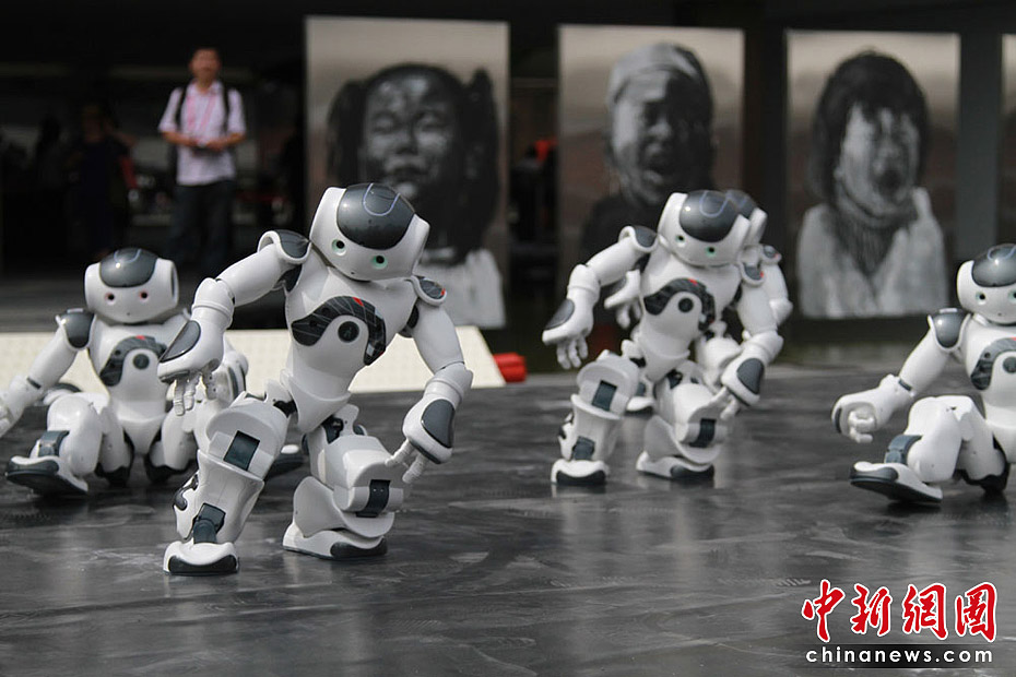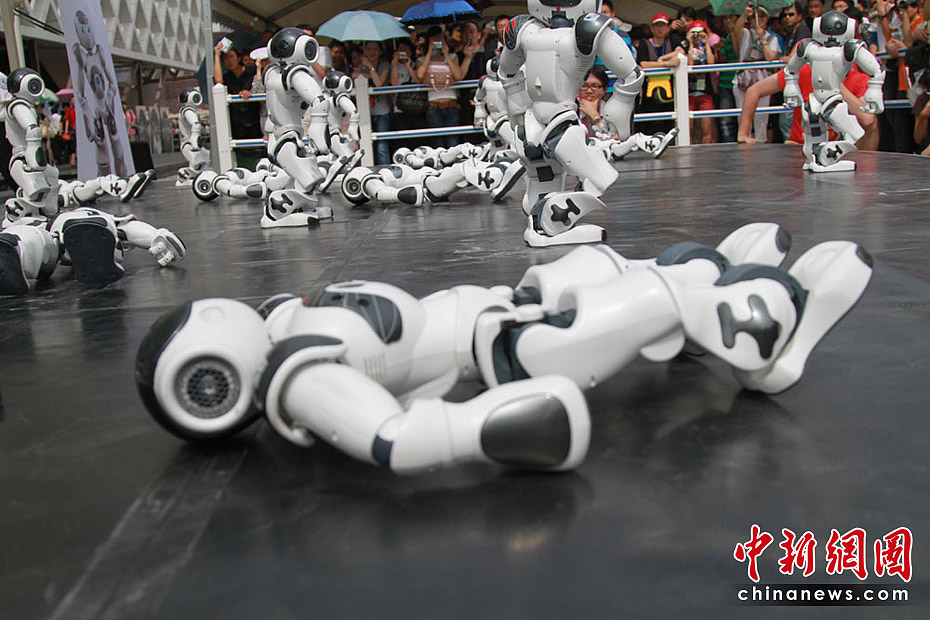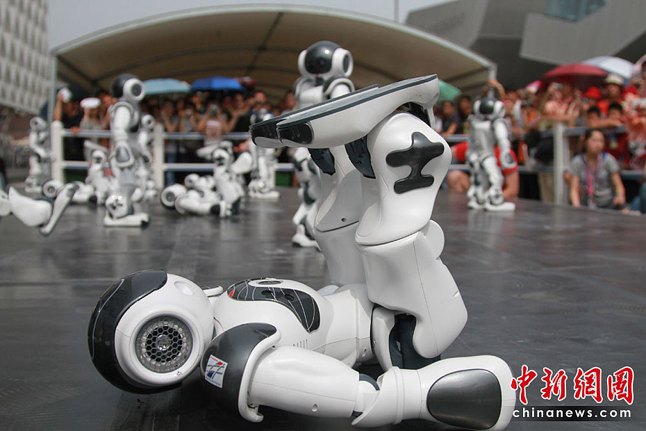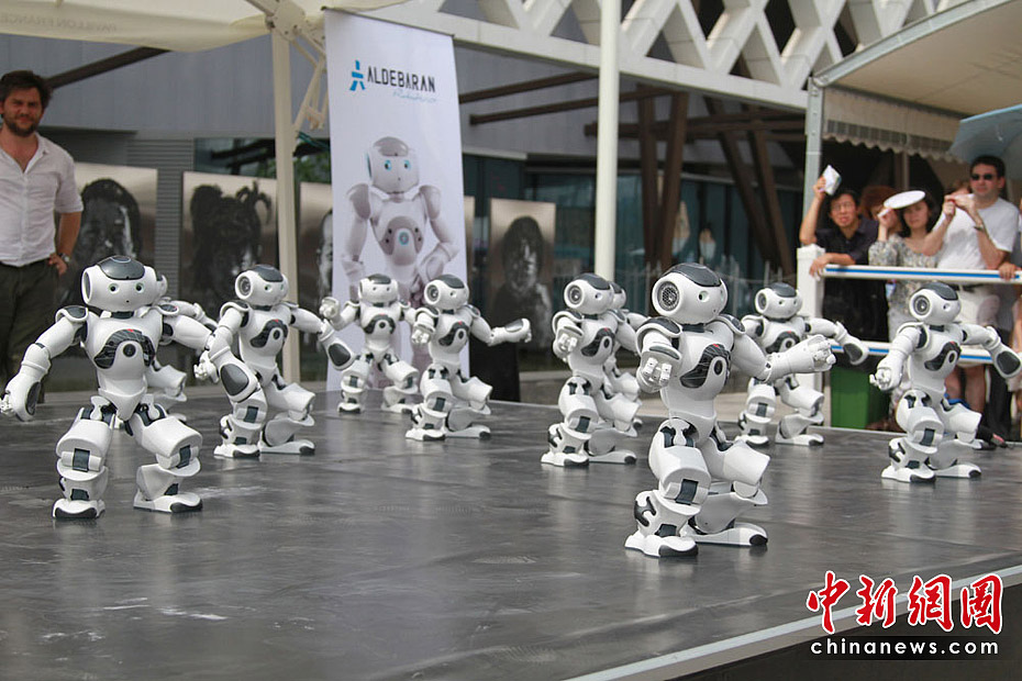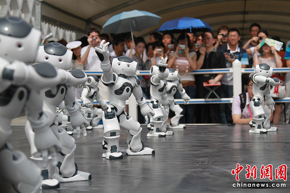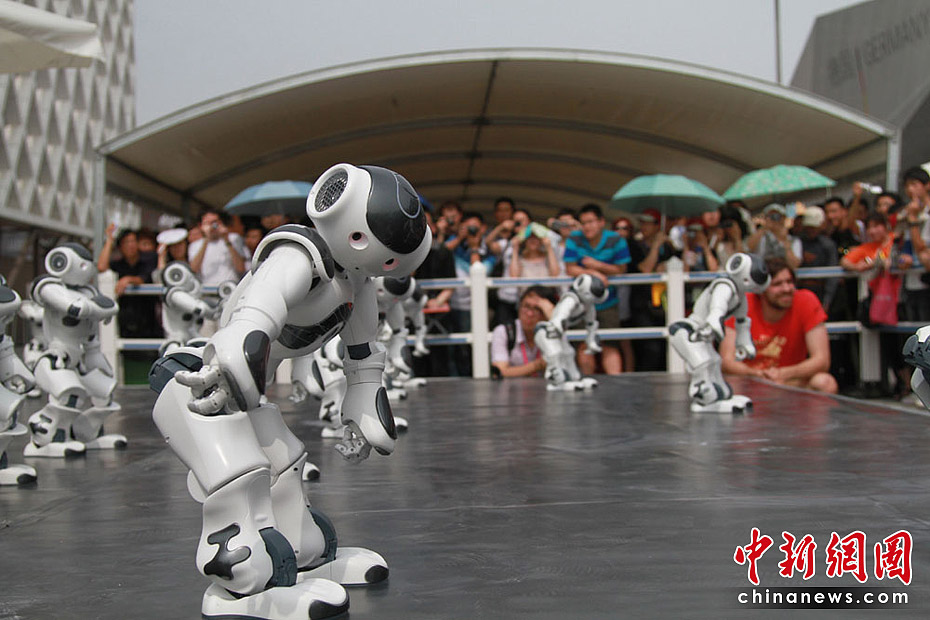 6月21日,上海世博会法国馆展示的机器人首次在展馆外入口处表演“舞蹈”。当天是世博法国国家馆日,馆方还举行系列了庆典活动。中新社记者 殷春永 摄
