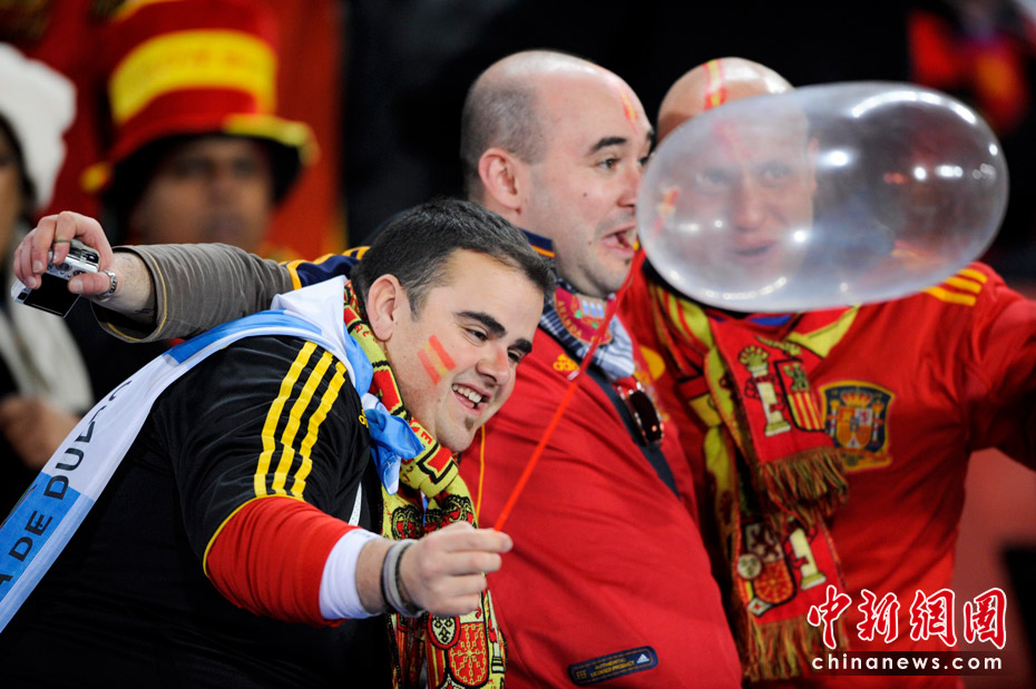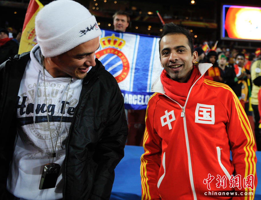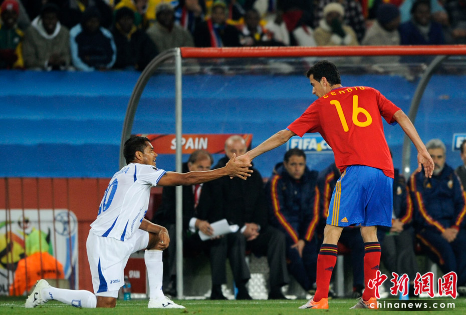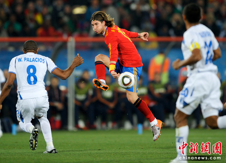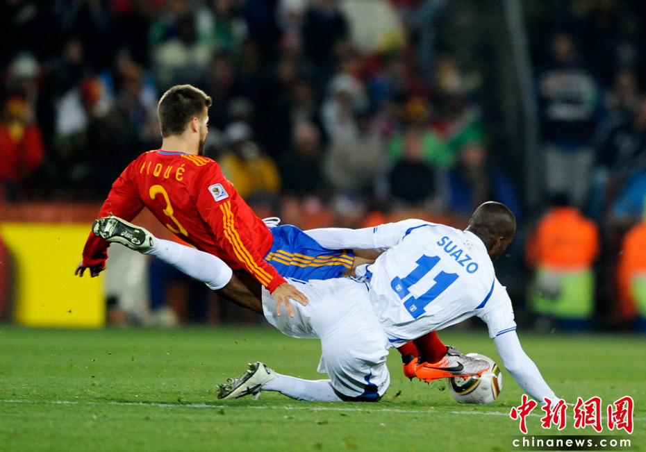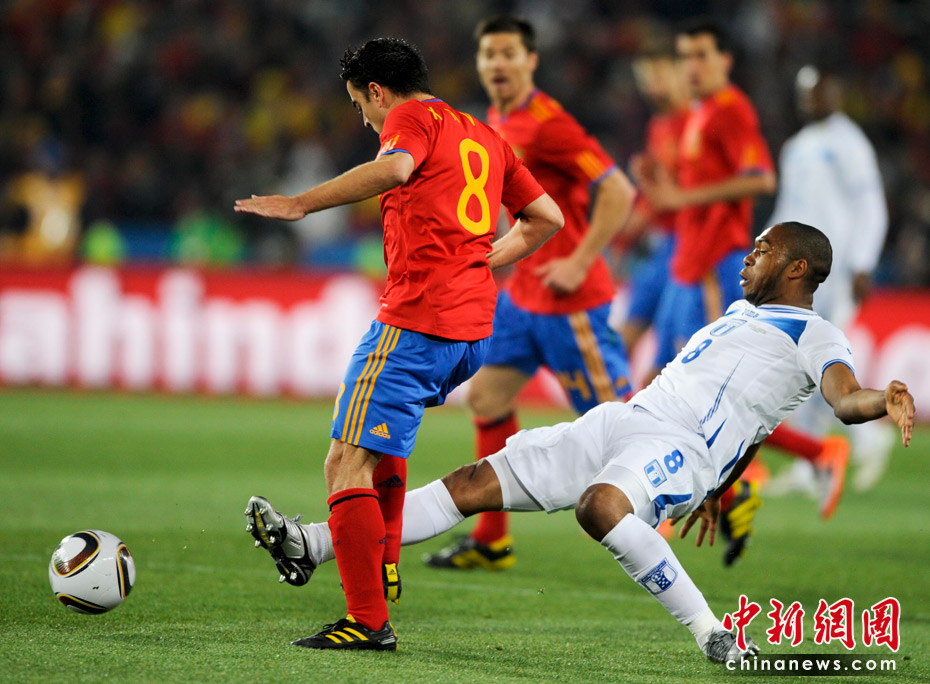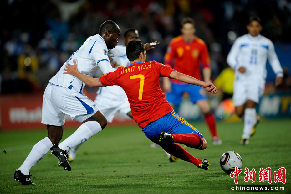 当地时间6月21日晚,南非世界杯小组赛第二轮西班牙对洪都拉斯的比赛在约翰内斯堡埃利斯公园体育场展开激烈的争夺,最终西班牙2比0击败洪都拉斯 。 中新社记者 廖攀 摄