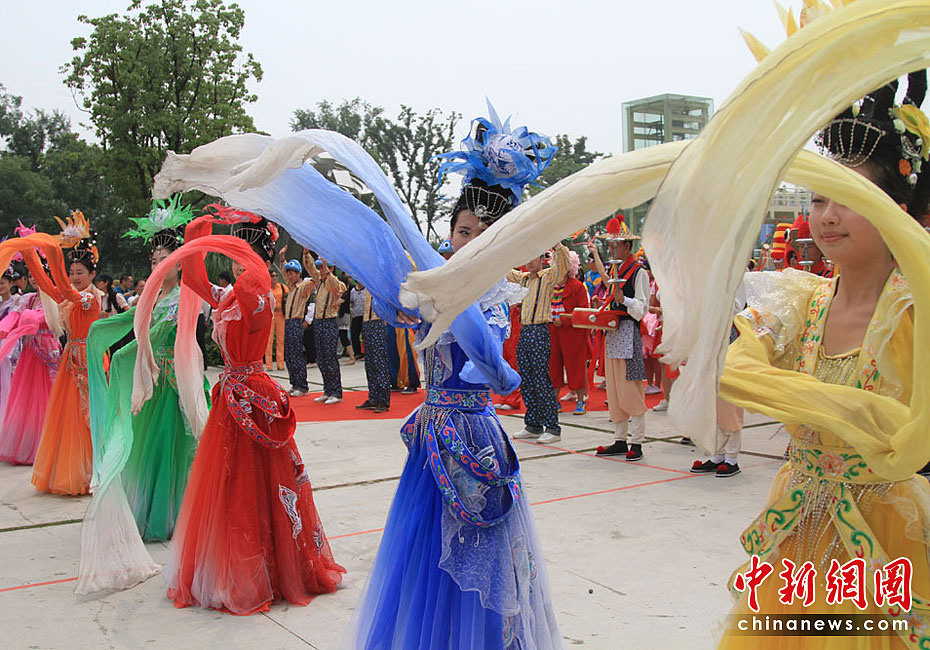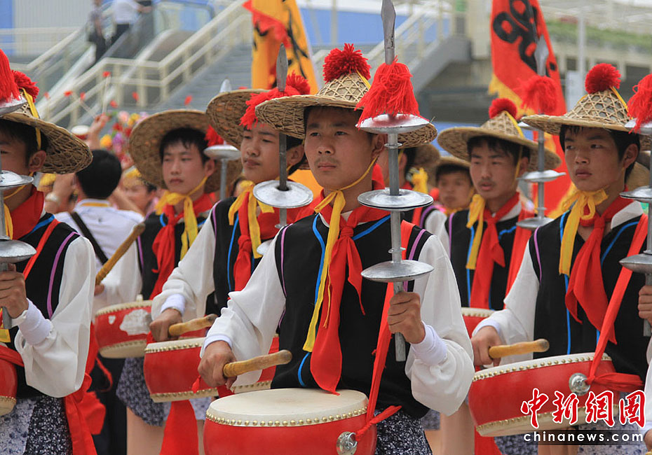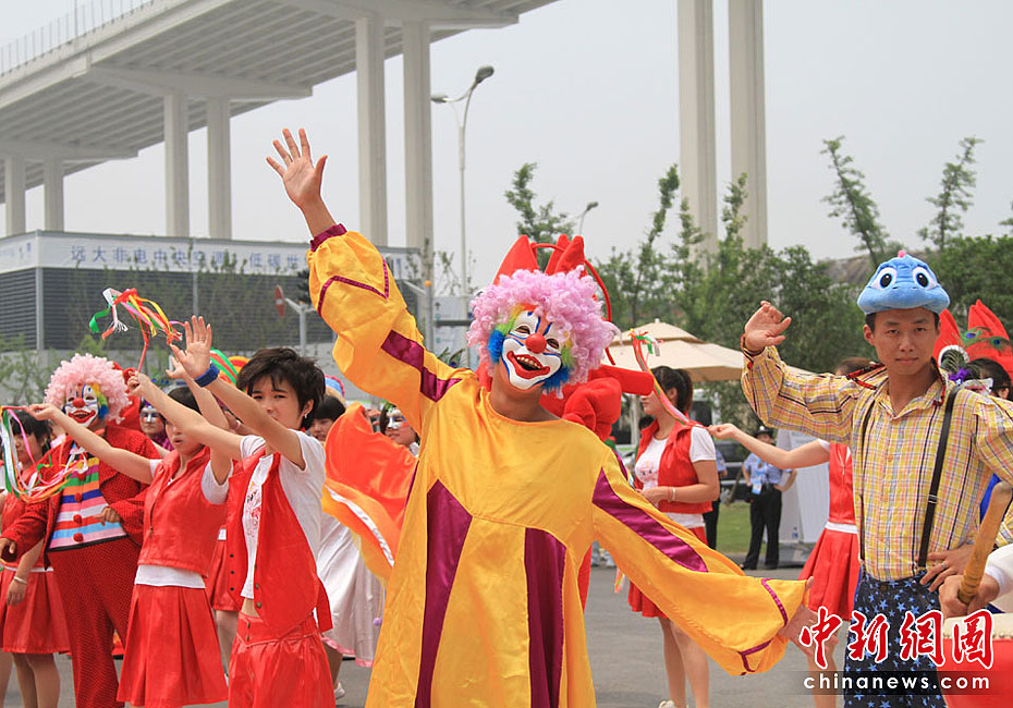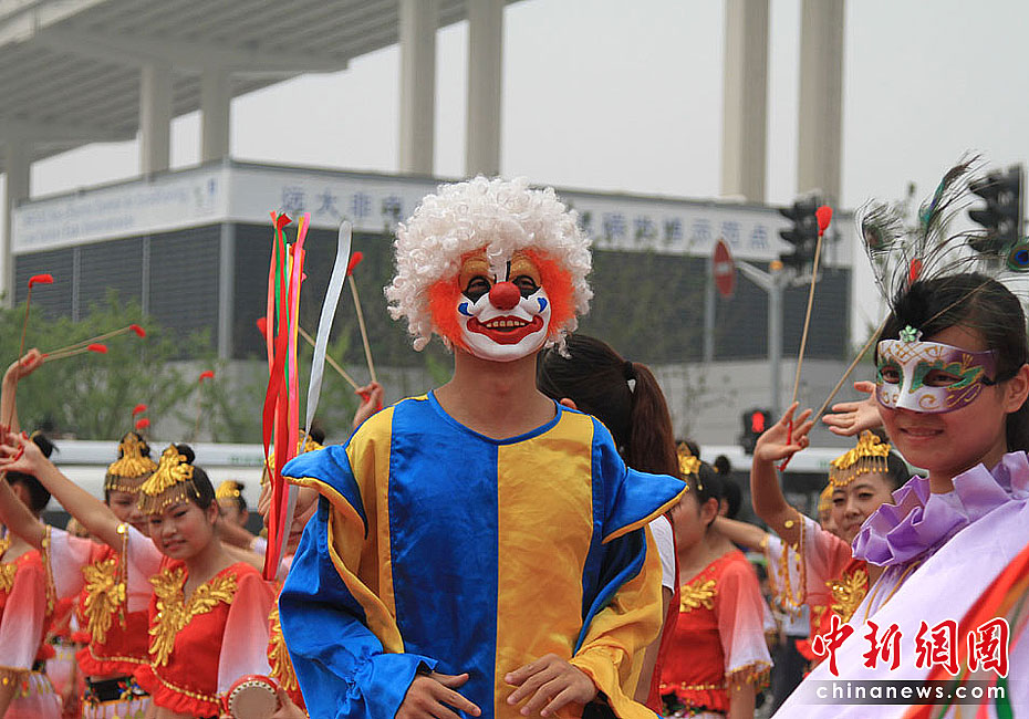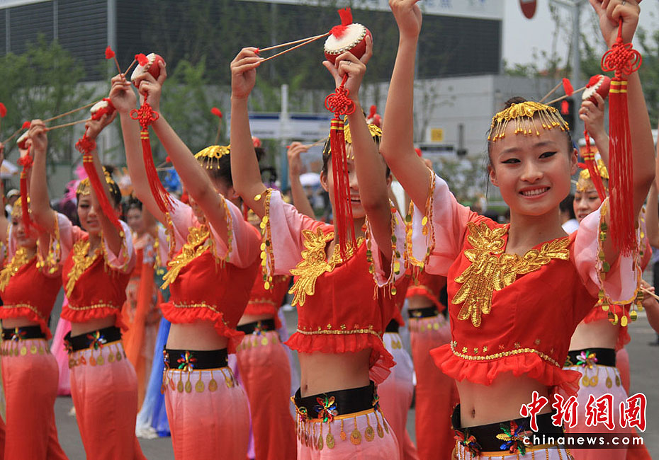 6月23日,上海世博会安徽活动周开幕,以安徽地方戏剧、特色文化为元素的“安徽风情,欢乐世博”大巡游同日在上海世博园启动。巡游队伍包括蚌埠花鼓灯、芜湖方特卡通、徽班、凤阳花鼓、休宁得胜鼓和4辆彩车。中新社记者 殷春永 摄