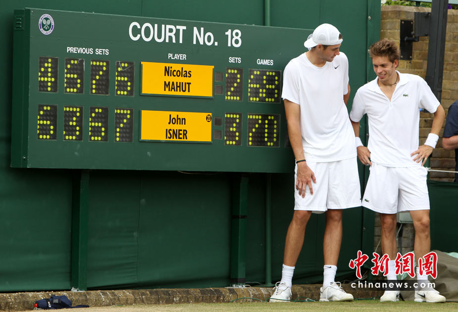 6月24日,2010年的温布尔登网球大满贯创造了一项吸引人眼球的纪录。在男单首轮比赛中,法国的马胡和美国大炮伊斯内尔在决胜盘长盘中制造了一系列恐怖纪录。整场比赛耗时665分钟,这是网球历史上第一次一场比赛分3天来完成。