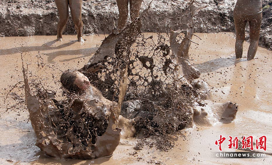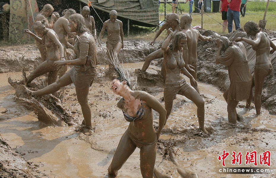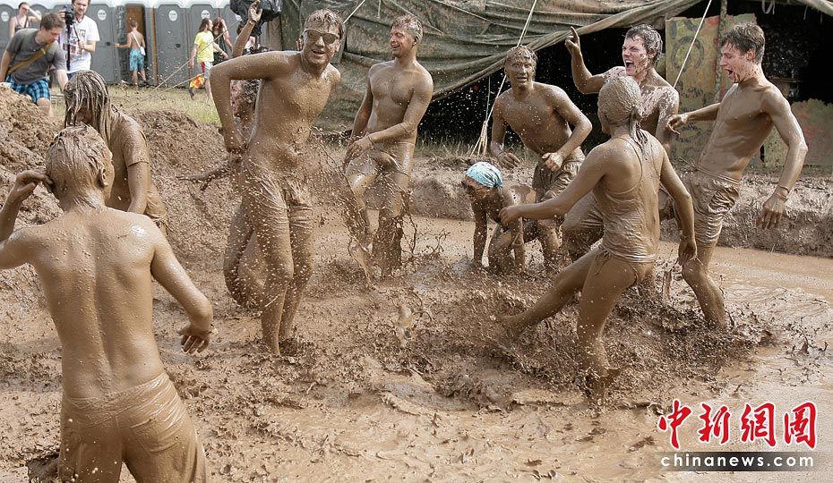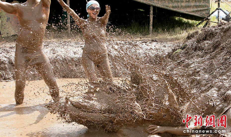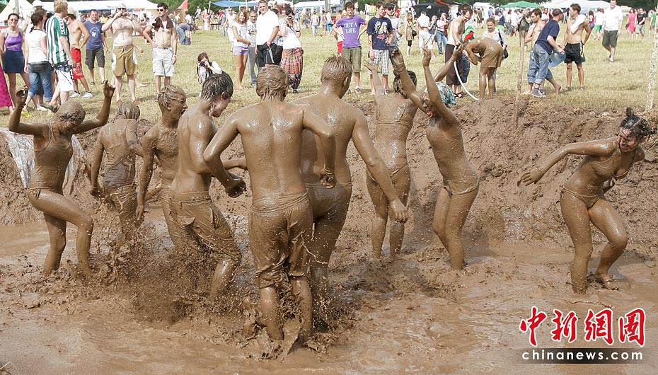 6月26日,在距离立陶宛维尔纽斯约90公里的一座村庄,参加第四届国际音乐节的人们在泥浆中尽情欢乐。当天,第四届维尔纽斯国际音乐节在该地上演,这是波罗的海沿岸国家最大的音乐艺术节日,吸引众多民众前来狂欢。