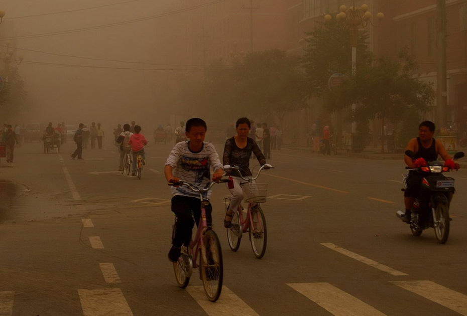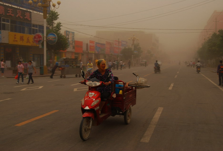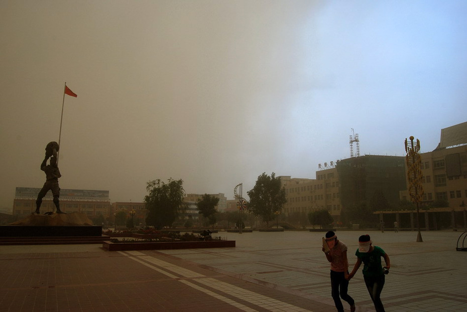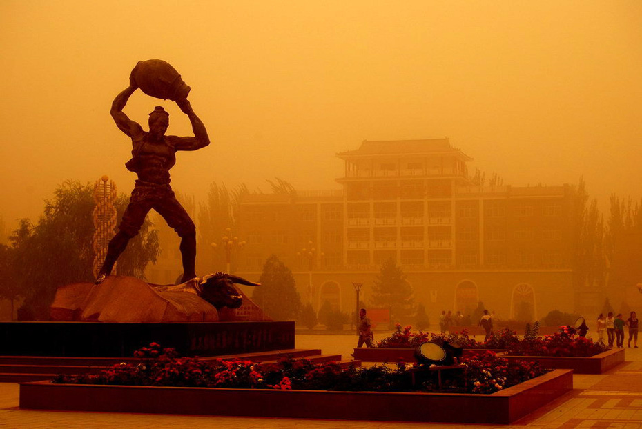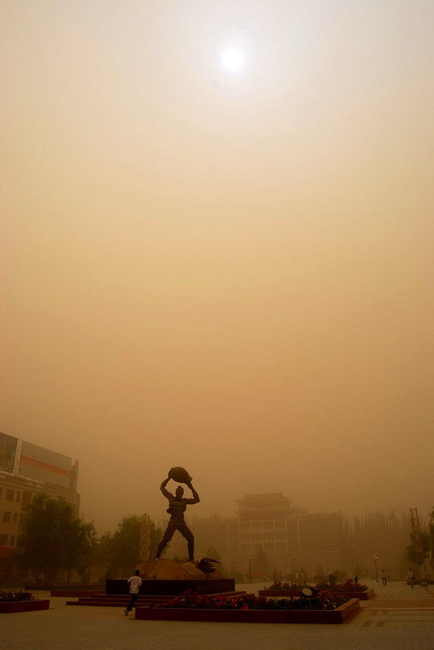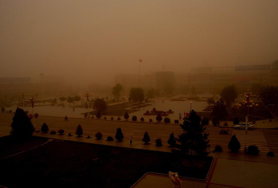 6月27日,甘肃民勤城区遭到沙尘袭击。当日下午4时左右,甘肃省武威市民勤县又遭沙尘暴袭击,黄黑的沙尘迅速笼罩整个县城,能见度大幅降低。今年4月24日甘肃民勤曾遭特大沙尘暴袭击。 图片来源:新华网 李军 摄