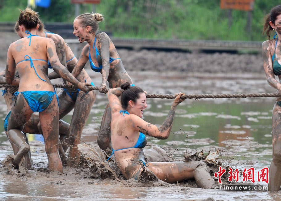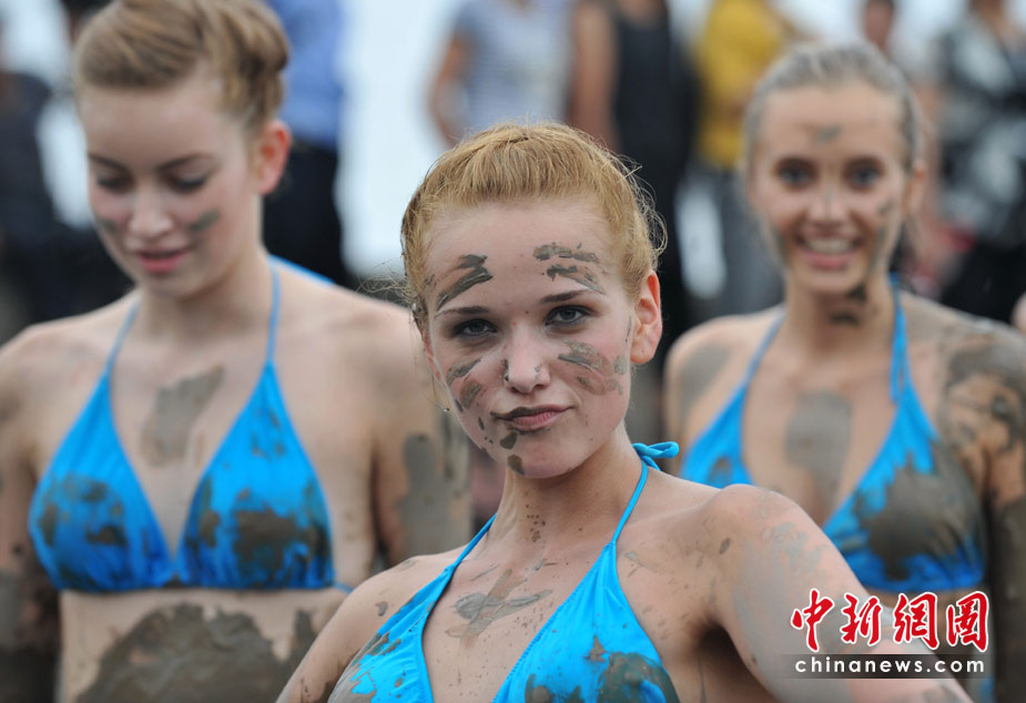 2010年6月28日,2010舟山群岛·新丝路国际海洋小姐大赛在浙江舟山参加秀山滑泥节。6月24日至7月5日,中国及澳大利亚、美国、英国等近40个国家的50名佳丽汇集千岛,角逐“2010国际海洋小姐”称号和“美人鱼”大奖。中新社发 琳红 摄