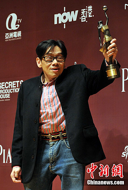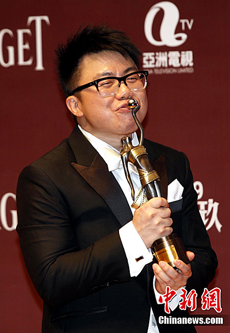 4月17日晚,“第三十届香港电影金像奖”颁奖典礼在香港文化中心大剧院隆重举行,庄文强凭执导电影“飞砂风中转”夺得最佳新晋导演奖项。中新社发 邓庆乐 摄