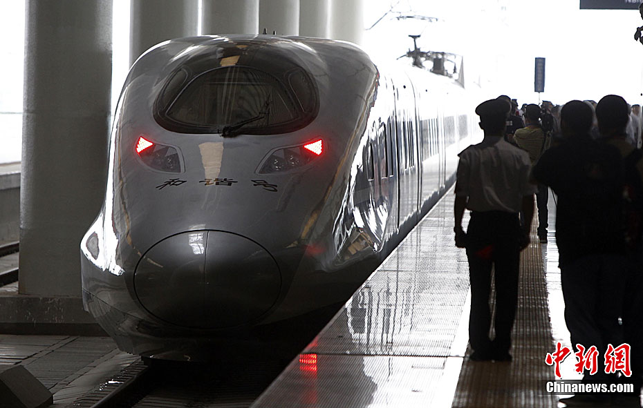 6月30日15时,备受关注的京沪高铁正式开通运营。作为新中国成立以来一次建设里程最长、投资最大、标准最高的高速铁路,京沪高铁贯通“三市四省”,串起京沪“经济走廊”。时速300公里动车组列车从北京到上海最短旅行时间仅需4小时48分。京沪高铁于2008年4月开工,总长度1318公里,总投资约2209亿元。京沪高铁票价最低410元,最高1750元。中新社发 汤彦俊 摄