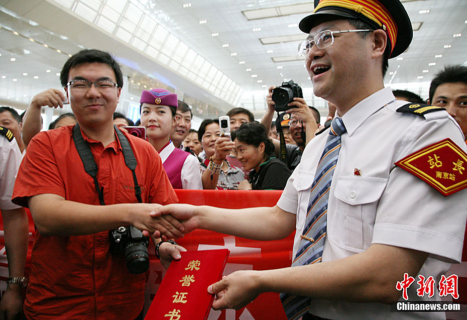 30日16:07时,伴随从上海虹桥开来的G2次列车缓缓进站,京沪高铁南京南站正式启用。京沪高铁是中国第一条具有世界先进水平的高速铁路,南京南站是其五大客运枢纽站之一,也是亚洲最大铁路枢纽,有“亚洲第一站”之称。整个站房占地20万平米,分高架、站台、地面、地下、地铁5个层次,旅客不用出站,即可实现铁路、公交、地铁、长途客车、机场大巴的“零距离”换乘。南站枢纽还包括南京大胜关长江大桥、城际铁路等浩大工程。朱晓颖 摄