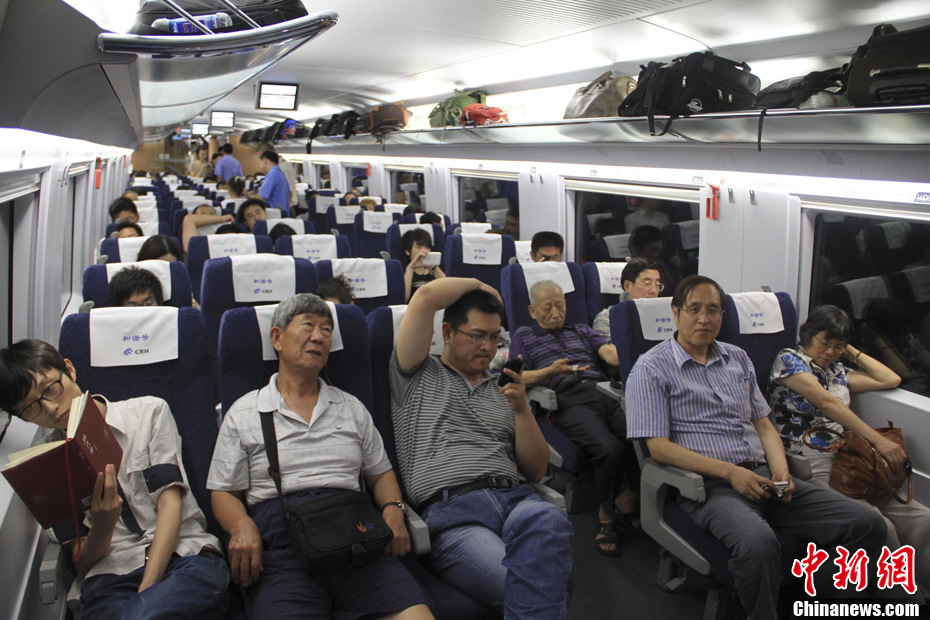 6月30日15时,备受关注的京沪高铁正式开通运营,“头班车”吸引了众多旅客前来体验。中新社发 石岩 摄
