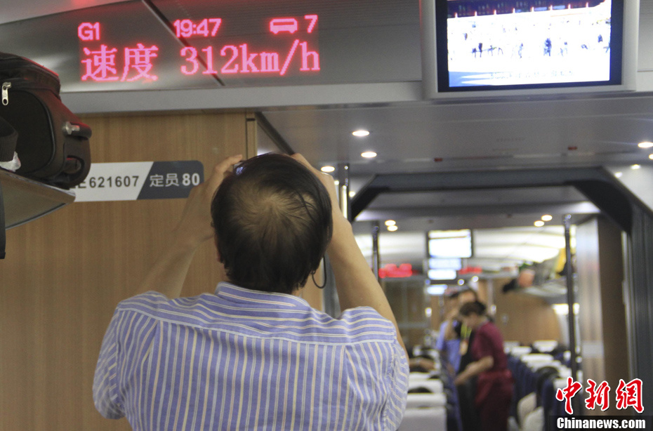 6月30日15时,备受关注的京沪高铁正式开通运营,“头班车”吸引了众多旅客前来体验。中新社发 石岩 摄