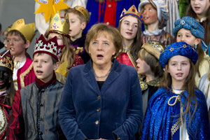 默克尔与小唱家们共歌