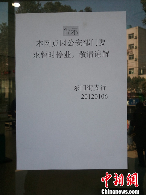 图为南京持枪抢劫案涉案农业银行暂停营业。吴瞳 摄