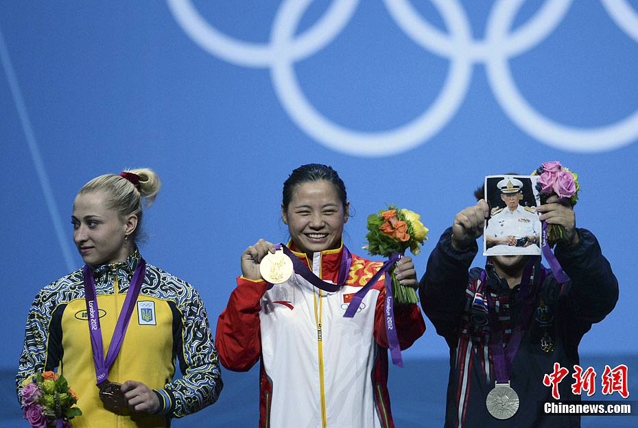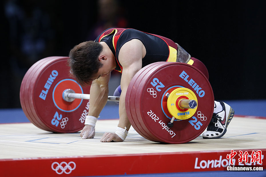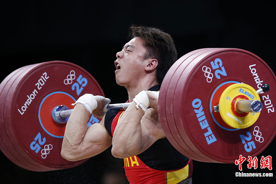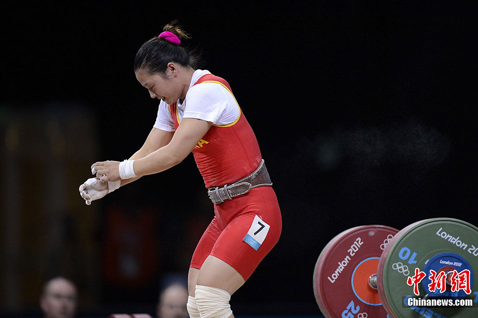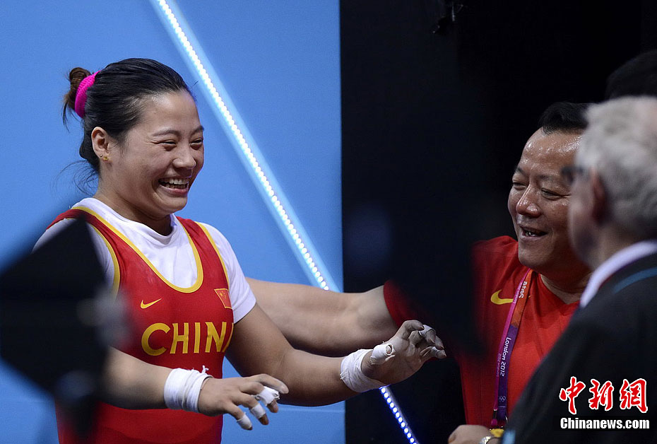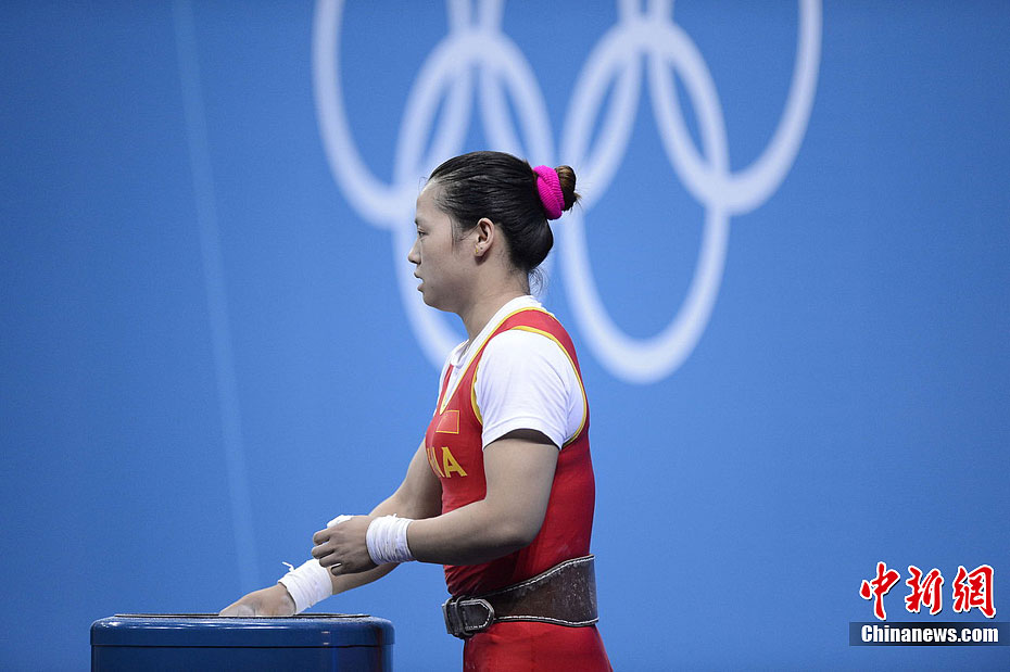 当地时间7月30日,伦敦奥运会女子举重58公斤级比赛中,22岁的中国选手李雪英以246公斤的总成绩夺冠,总成绩及抓举成绩打破奥运会纪录。记者 盛佳鹏 摄