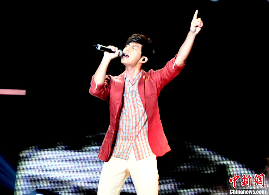 8月13日晚间,2012“华语咪咕榜中榜励志金曲·成都盛典”在成都东区音乐公园拉开帷幕。当晚,五月天凭借《倔强》,众望所归的拿到重量级的亚洲最具影响励志金曲。图为五月天在颁奖典礼现场。中新社发 安源 摄