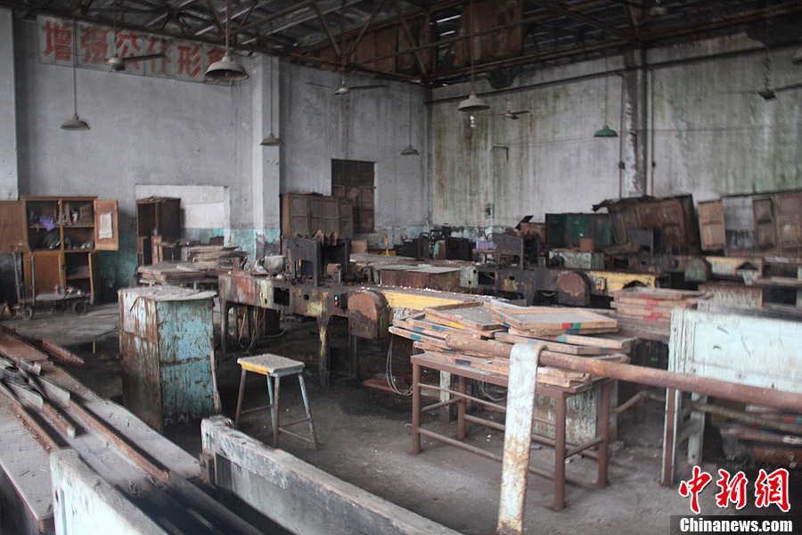 9月6日,伴着一场颇具寒意的秋雨,河北泊头火柴有限公司最后一批设备的资产处置拍卖会在泊头举行。这意味着这座曾经是亚洲最大的百年火柴生产厂家将在瑟瑟秋雨中彻底走进历史。图为泊头火柴厂内破旧的设备。