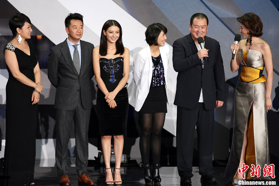 9月7日晚,中国电视界的最高盛会第9届中国金鹰电视艺术节在湖南长沙“展翅”启幕。刘诗诗、高圆圆、黄海波、孙楠、萧敬腾、李宇春、孙杨等各路明星悉数到场,献上各自精彩的表演。图为导演刘江(右二)携新剧《我们结婚吧》主演王彤、高圆圆、黄海波、张凯莉亮相开幕式,讲述幕后故事。邓霞 摄