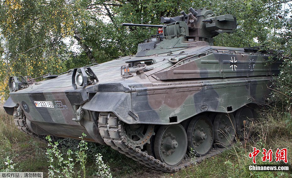 当地时间9月19日,德国联邦国防军陆军在西北部的明斯特地区举行大规模军事演习。图为德国“貂鼠”装甲车参加演习。