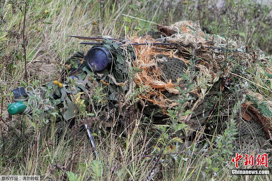 当地时间9月19日,德国联邦国防军陆军在西北部的明斯特地区举行大规模军事演习。图为德国狙击手在演习现场。