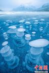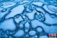 加拿大亚伯拉罕湖出现冰冻气泡奇观