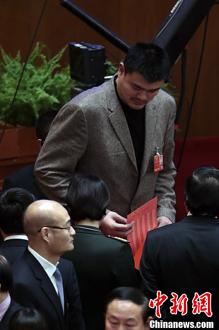 3月11日下午,全国政协十二届一次会议第四次全体会议在北京人民大会堂举行,选举产生新一届政协领导人。图为姚明投票。中新社发 杜洋 摄