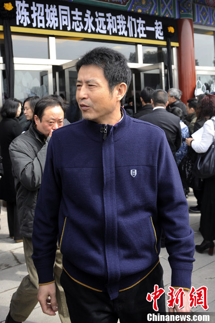 4月5日,中国女排名宿陈招娣的追悼会在北京八宝山举行,近千名八一体工队队员及北京市民前来送行。陈招娣,浙江杭州人,80年代中国老一代女排缔造辉煌成绩的领军人物之一,于2013年4月1日逝世,享年58岁。图为陈忠和前来追悼陈招娣。中新社发 崔楠 摄