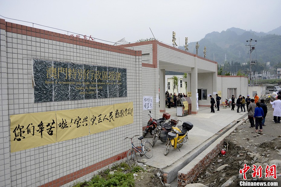 4月21日,四川省雅安市宝兴县灵关镇,由澳门援建的灵关中学设为灾民安置点。中新社发 廖攀 摄