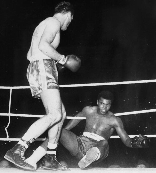 7. 1963年——英国著名拳手亨利-库伯在温布利将卡修斯•克莱(阿里)击倒在地,使这位享誉全世界的拳王职业生涯中第一次被击倒,虽然在后面的第二回合中,库伯眼角的伤势不断扩大并影响了他的发挥,但是拳王阿里在后来回想起这场比赛时,还是忍不住夸赞这位英国人。图片来源:环球网