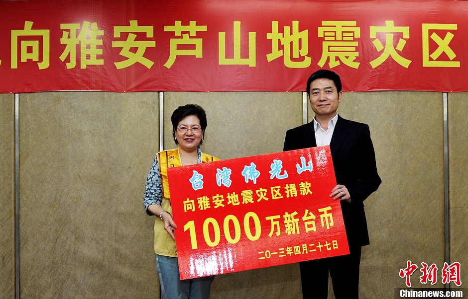 台湾同胞向芦山地震灾区捐赠3.2亿元人民币