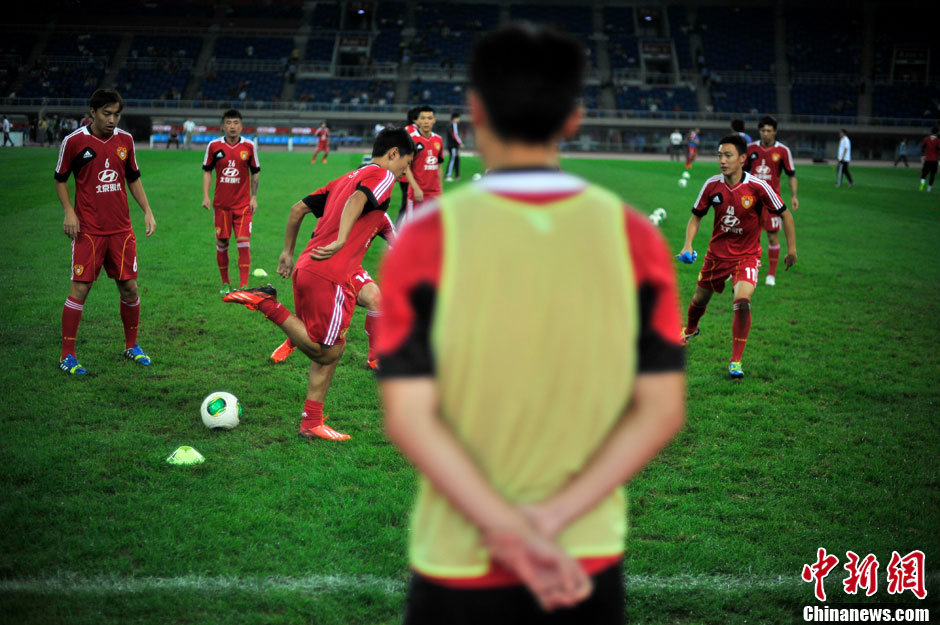 9月10日晚,天津奥林匹克中心体育场,中国国家队以2比0击败马来西亚队取得热身赛连胜。中新社发 佟郁 摄