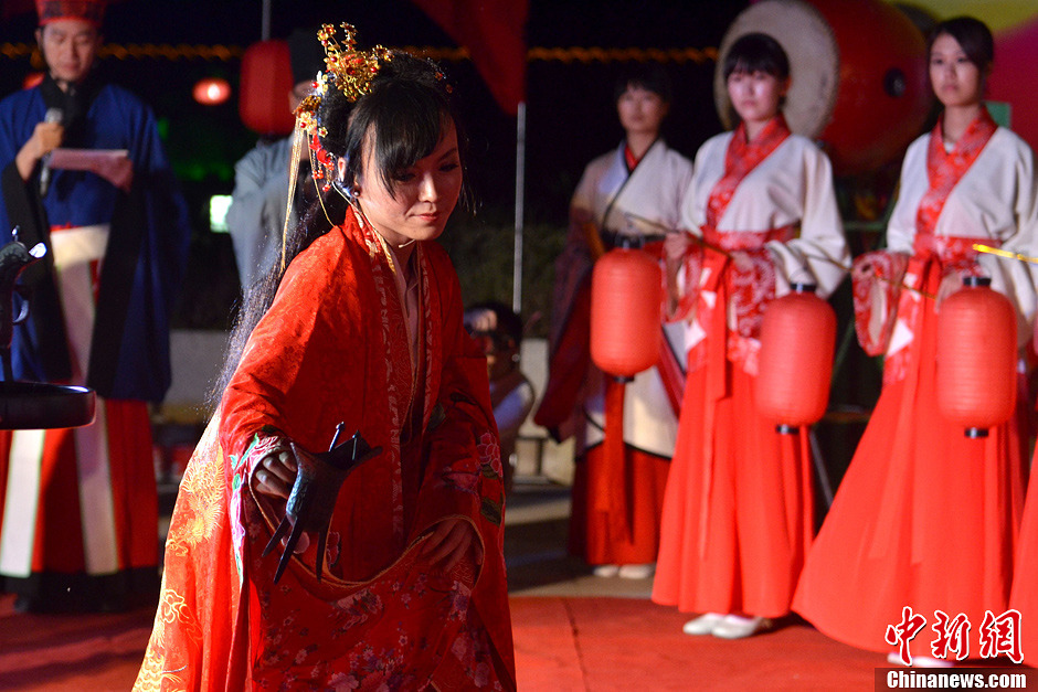 9月19日晚,2013年第四届海峡两岸(苏州)中秋祭月活动在江苏苏州盘门景区举行。中新社发 王思哲 摄