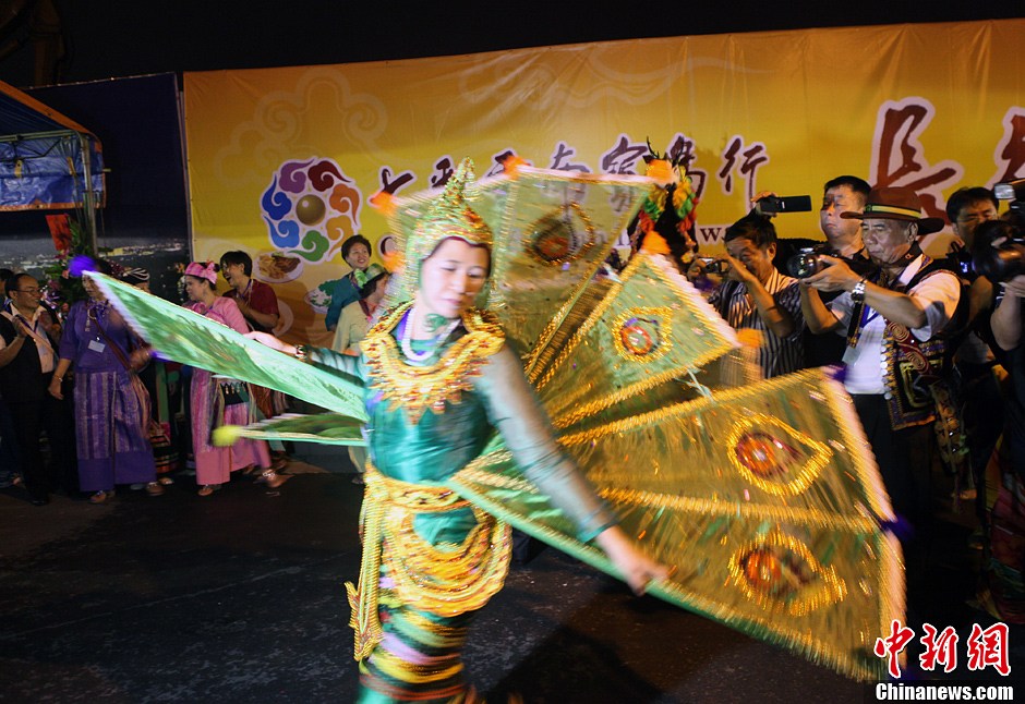 9月19日是中秋节。“七彩云南宝岛行”参访团19日到桃园县参访。图为台湾云南乡亲在长街宴上载歌载舞欢迎参访团。中新社发 陈立宇 摄