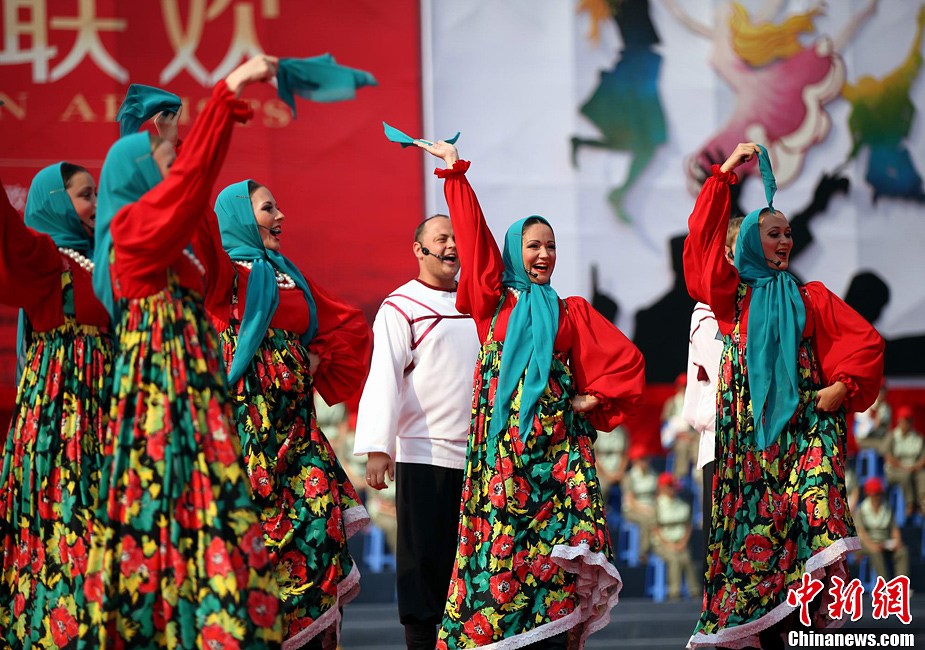 9月19日,是中国传统的中秋节,来自五大洲14个国家的300多位艺术家们,在三峡工程所在地湖北宜昌市和当地观众一起欢度中秋,激情大联欢。活动中,激情澎湃的俄罗斯歌曲《我可爱的母亲俄罗斯》、张扬个性的美国舞蹈《嬉皮士》、狂热豪放的非洲舞蹈《路》、深受年轻人喜爱的澳大利亚摇滚《最炫民族风》以及彰显埃及传统的舞蹈《转裙舞》等一个个极具艺术性和欣赏性的节目登台展出,把整个活动推向高潮。中国艺术家和宜昌本土艺术家也激情飞扬,把绚烂民族风绽放在这个舞台上。中国国际民间文化艺术节由中国文联主办,已成功举办了八届,五大洲70多个国家、100多个民族民间歌舞团曾参加这一盛会。图为俄罗斯彼得尼茨基国家模范合唱团在表演。刘良伟 摄