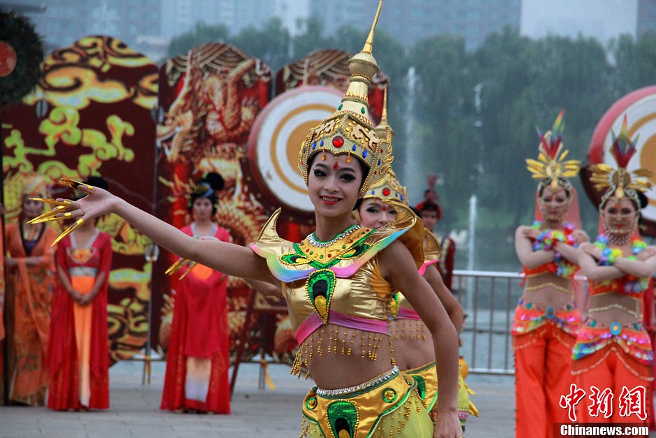 9月20日,一场以传统文化及盛唐皇家文艺表演为内容“中秋嘉年华”在地处中国内陆的西安大唐芙蓉园举行,从宫中仕女的曼妙舞姿到大唐兵阵的雄壮威武;从万国来朝的繁荣景象到绚丽璀璨的东方智慧,令此间市民充分感受中国传统文化的魅力。图为异域风情表演令观众大饱眼福。张一辰 摄