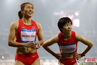 10月9日,在2013东亚运动会田径女子一百米栏决赛中,中国选手吴水娇(中)以12.93秒摘得金牌。中新社发 富田 摄