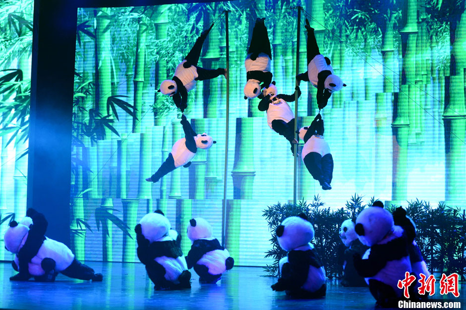 10月9日晚,由阎肃、谷建芬、韩美林、冯小刚任艺术顾问,姜昆、徐沛东、杨丽萍、杨澜、崔永元任策划,赵安任总导演的大型中国风情秀《PANDA!》在北京首演,这是第一个即将在美国拉斯维加斯常年驻场表演的中国大型演出。中新社发 李学仕 摄